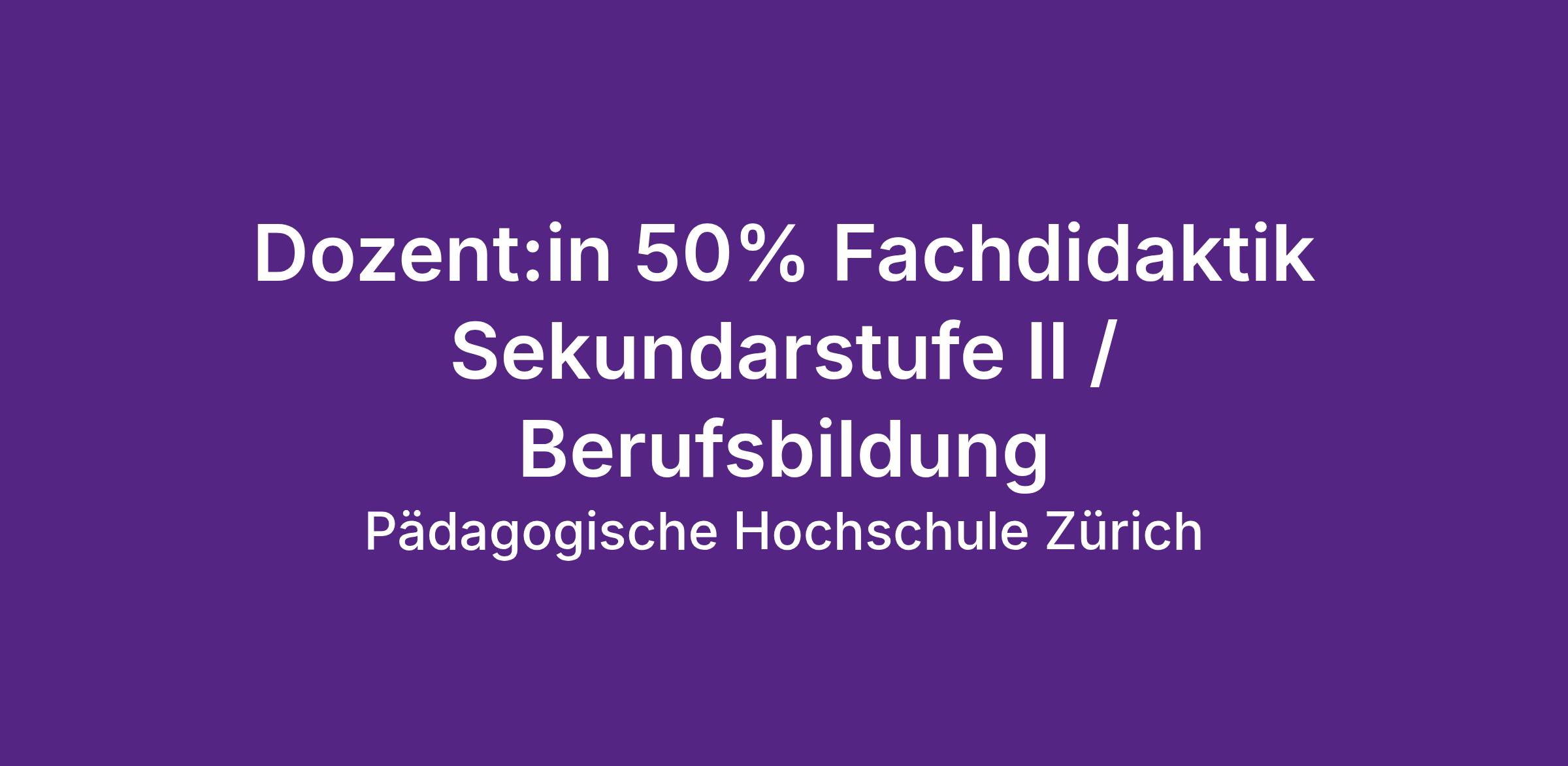 Die Pädagogische Hochschule Zürich gestaltet Bildung, Schule und Unterricht von heute und morgen in Lehre und Forschung aktiv mit. Die Abteilung Sekundarstufe II / Berufsbildung bildet Lehrpersonen für Berufsfachschulen, überbetriebliche Kurse und Höhere Fachschulen aus. Sie bietet derzeit neun Studiengänge, fünf für den hauptberuflichen Unterricht an einer Berufsfachschule und vier für nebenberufliche Ausbildungstätigkeit.