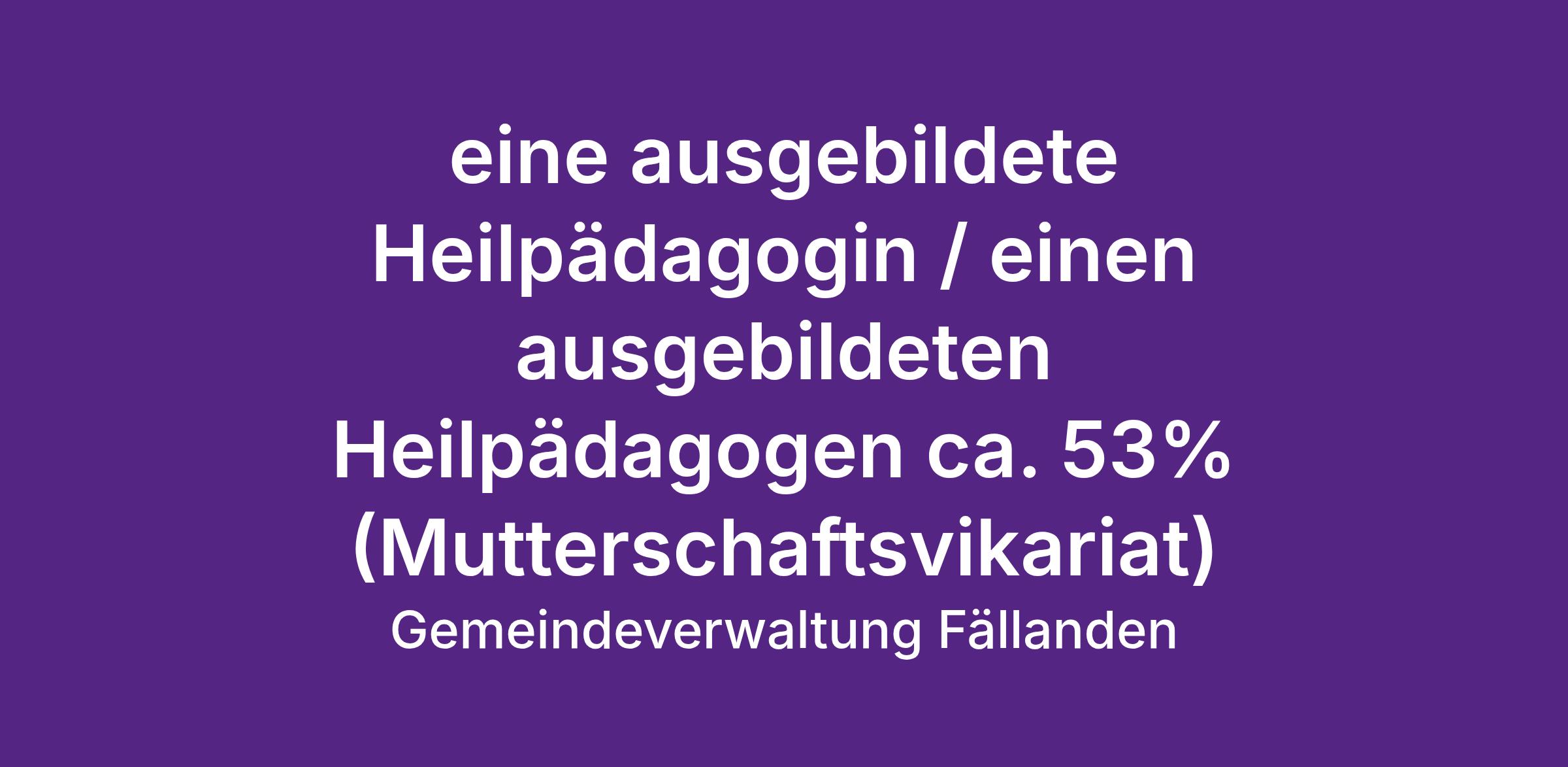 eine ausgebildete Heilpädagogin / einen ausgebildeten Heilpädagogen, 16 WL ca. 53% (Mutterschaftsvikariat).