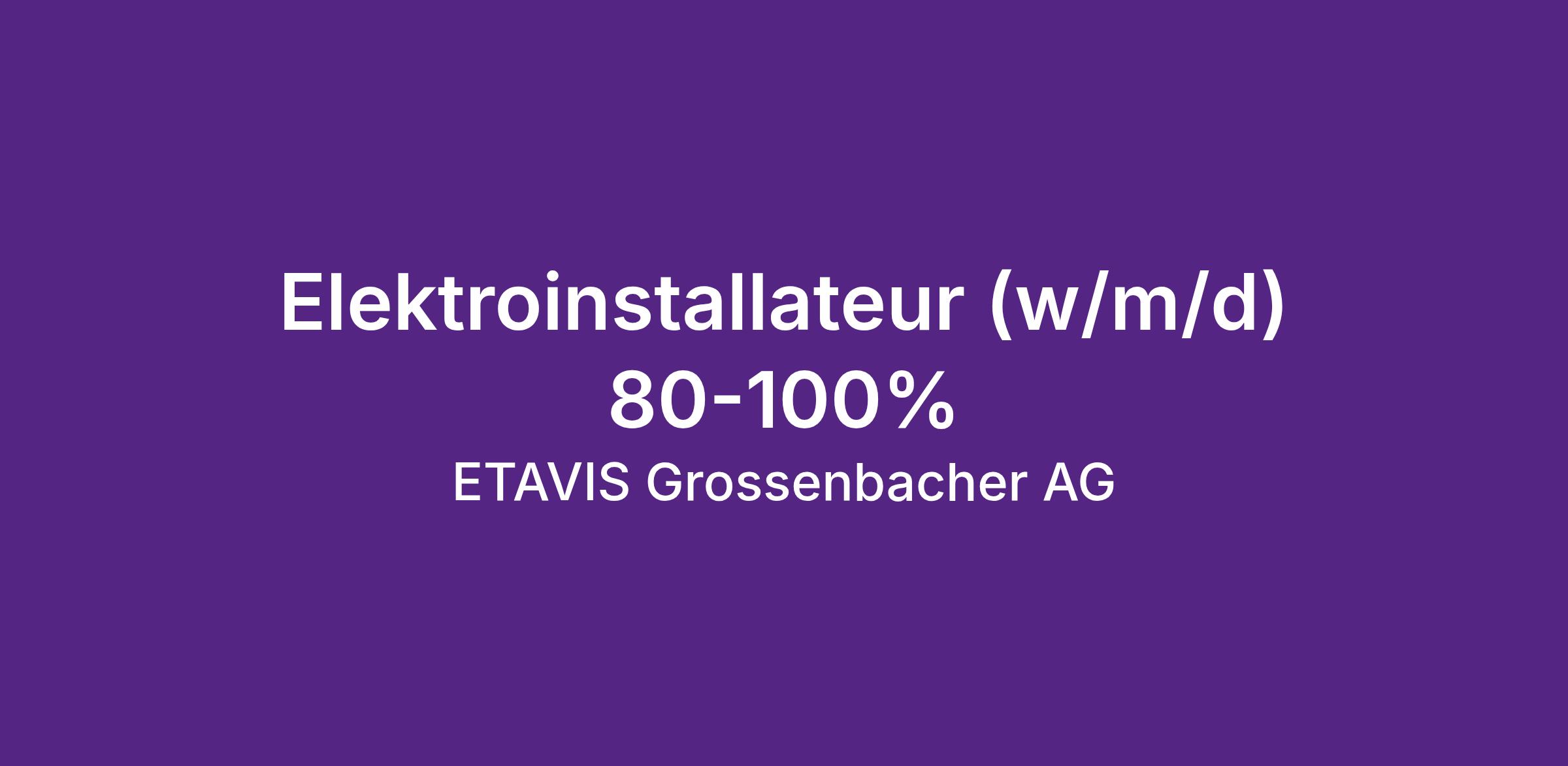 Die ETAVIS Grossenbacher AG ist eines der führenden Unternehmen im schweizerischen Elektroinstallations- und Telekommunikationsmarkt in der Ostschweiz. Um auch weiterhin unseren hohen Standard halten zu können, suchen wir eine kundenorientierte, flexible und engagierte Person wie dich!
