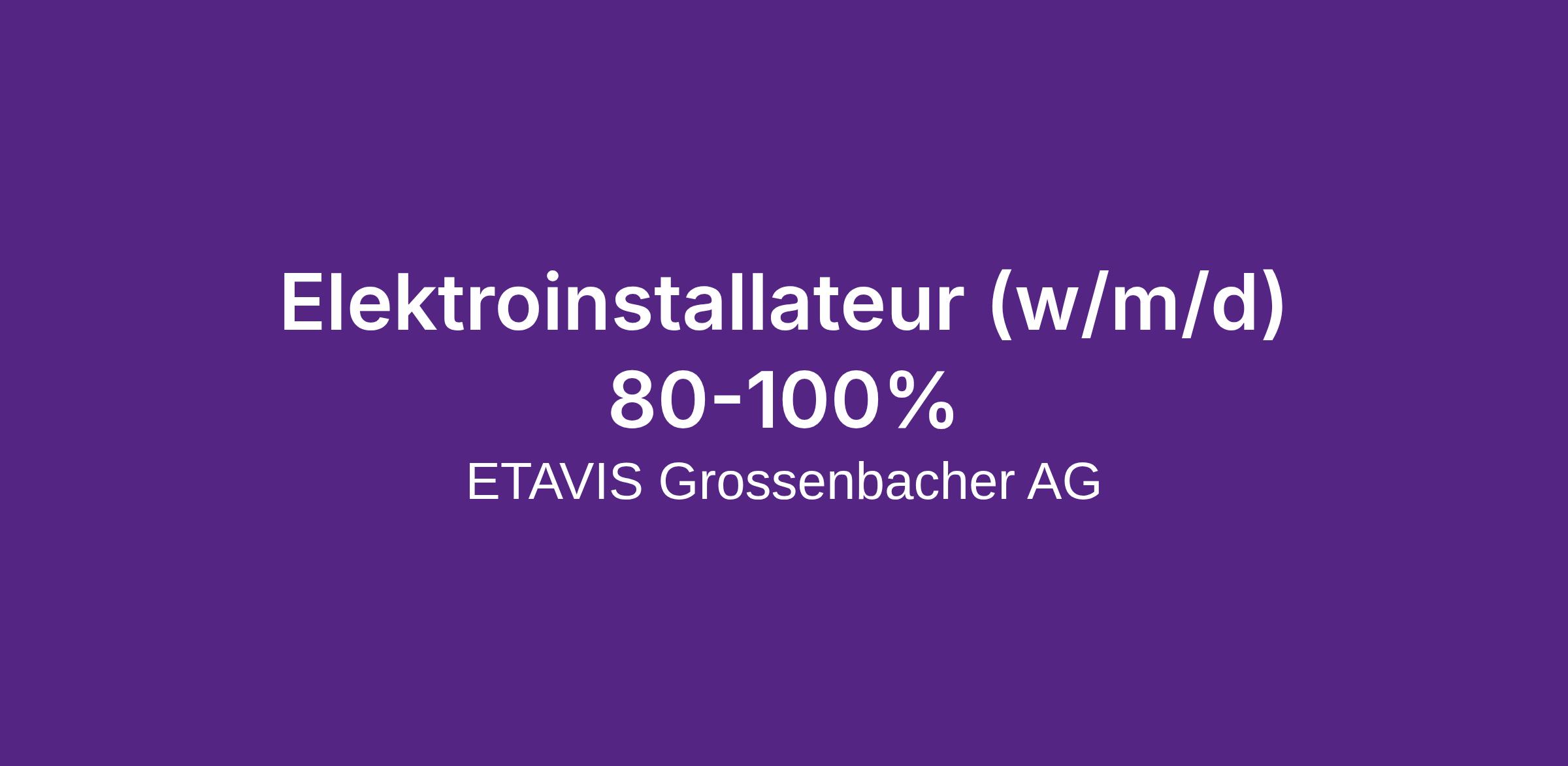 Die ETAVIS Grossenbacher AG ist eines der führenden Unternehmen im schweizerischen Elektroinstallations- und Telekommunikationsmarkt in der Ostschweiz. Um auch weiterhin unseren hohen Standard halten zu können, suchen wir eine kundenorientierte, flexible und engagierte Person wie dich!