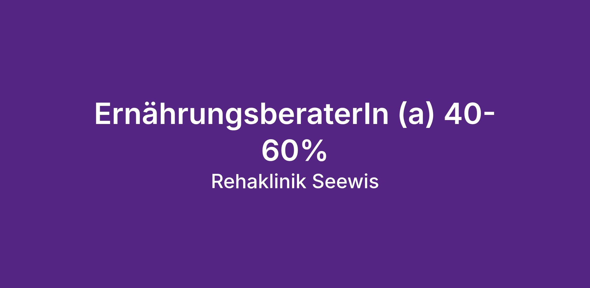 ErnährungsberaterIn (a) 40-60% Arbeitsort: Rehaklinik SeewisWo dein Job Reha macht.Kardiologie, Innere Medizin / Onkologie und Psychiatrie/Psychosomatik. Erstklassige Rehabilitation, eingebettet in e