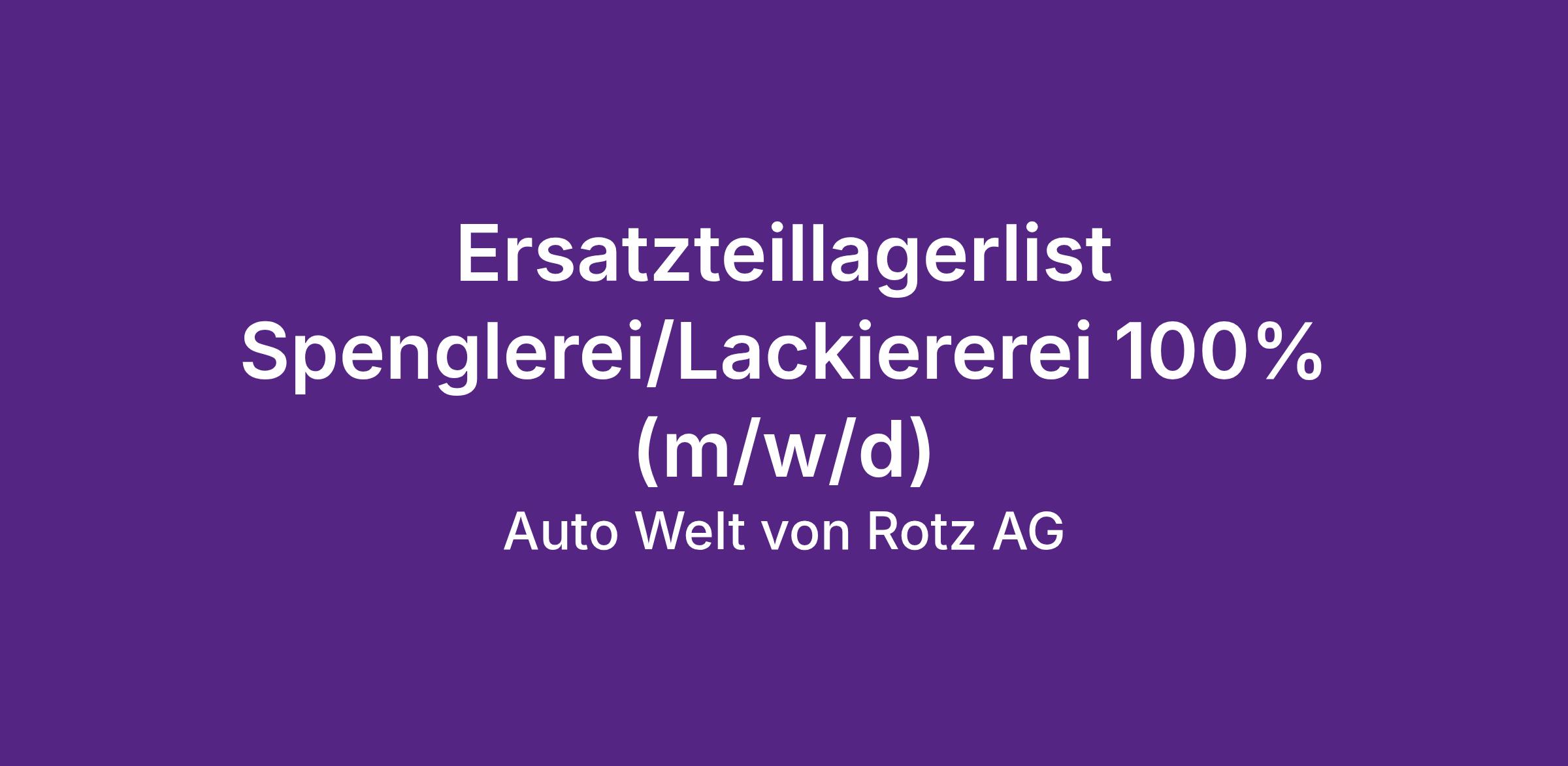 Ersatzteillagerist Spenglerei/Lackiererei 100% (m/w/d)