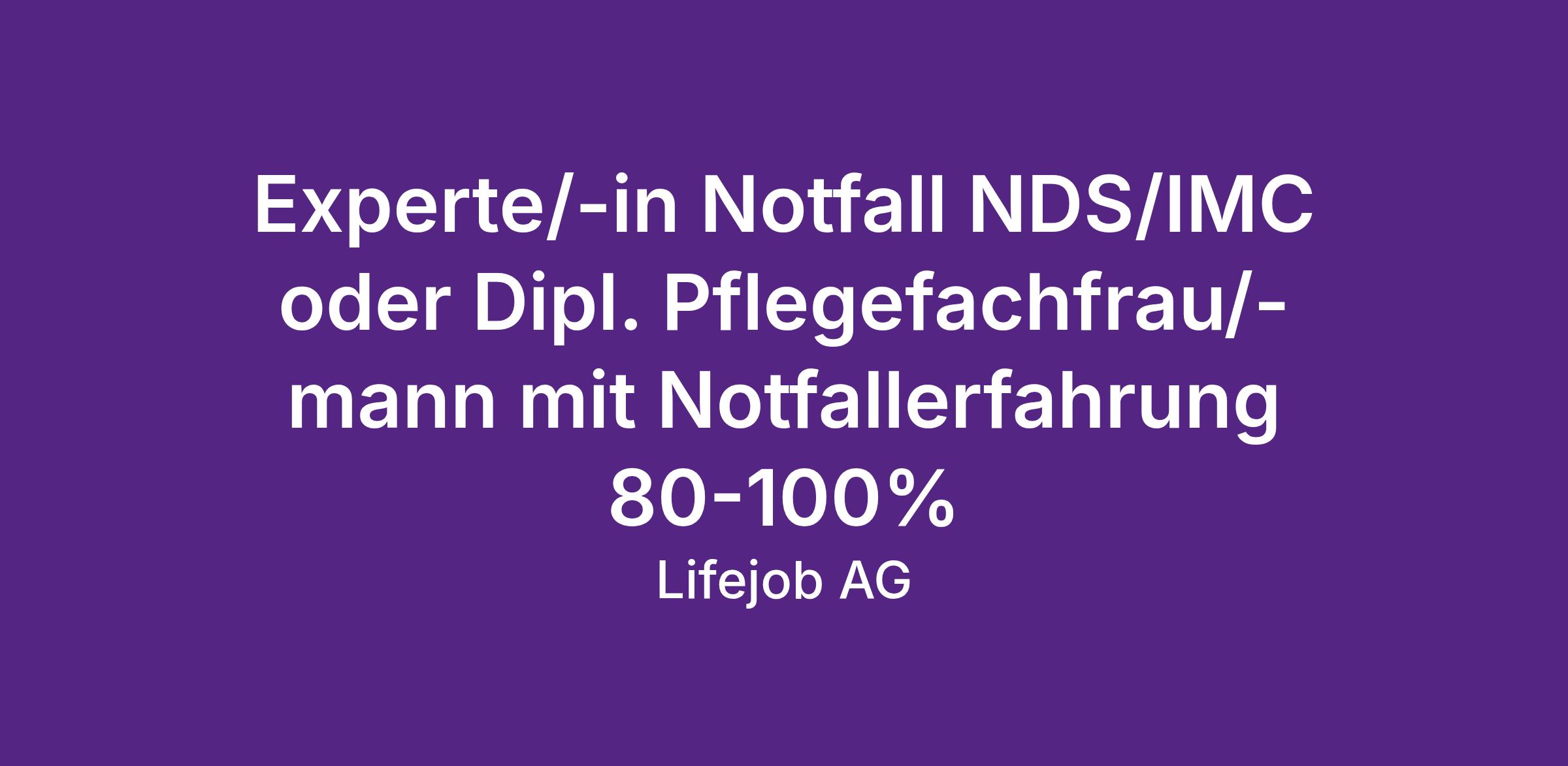 Experte/-in Notfall NDS/IMC oder Dipl. Pflegefachfrau/-mann mit Notfallerfahrung 80-100%