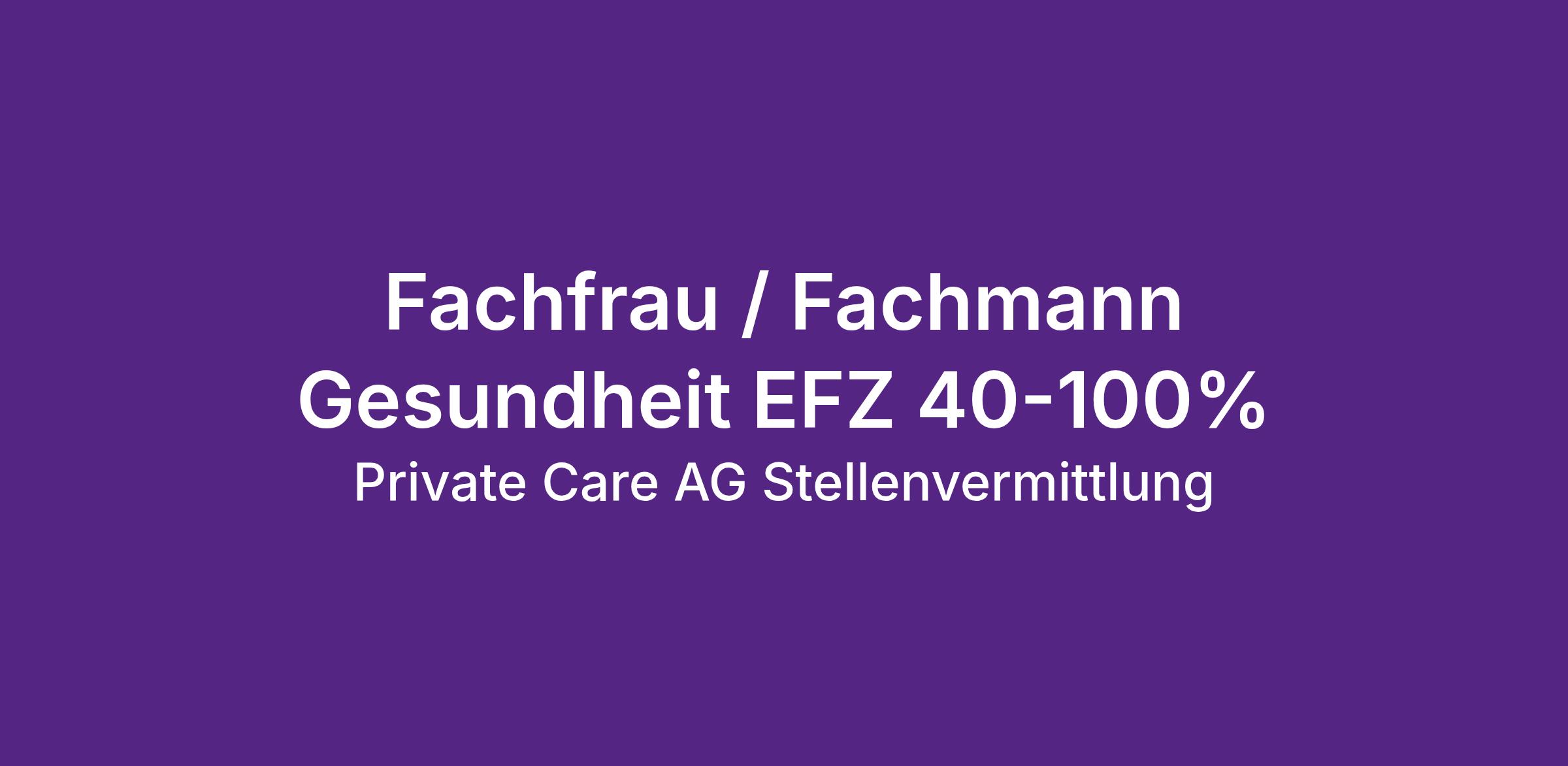 Für unseren Kunden suchen wir per sofort oder nach Vereinbarung eine/-n pflichtbewusste/-n und empathische/-n Fachfrau / Fachmann Gesundheit EFZ (40–100%).