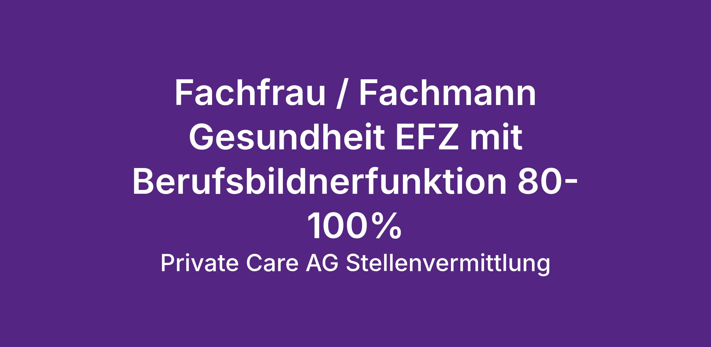 Für unseren Kunden suchen wir per sofort oder nach Vereinbarung eine/-n pflichtbewusste/-n und empathische/-n Fachfrau / Fachmann Gesundheit EFZ mit Berufsbildnerfunktion.