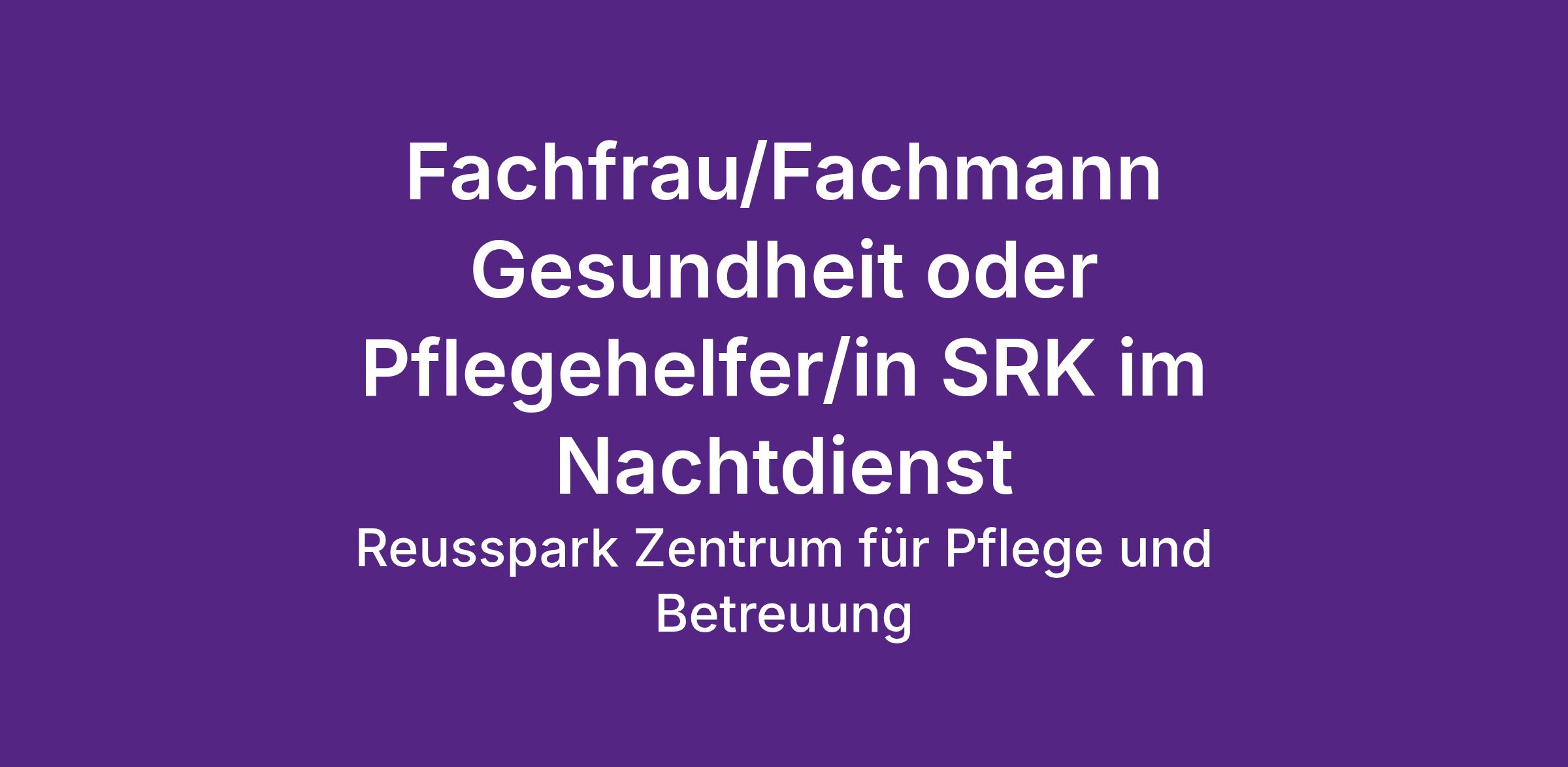 Fachfrau/Fachmann Gesundheit oder Pflegehelfer/in SRK im Nachtdienst