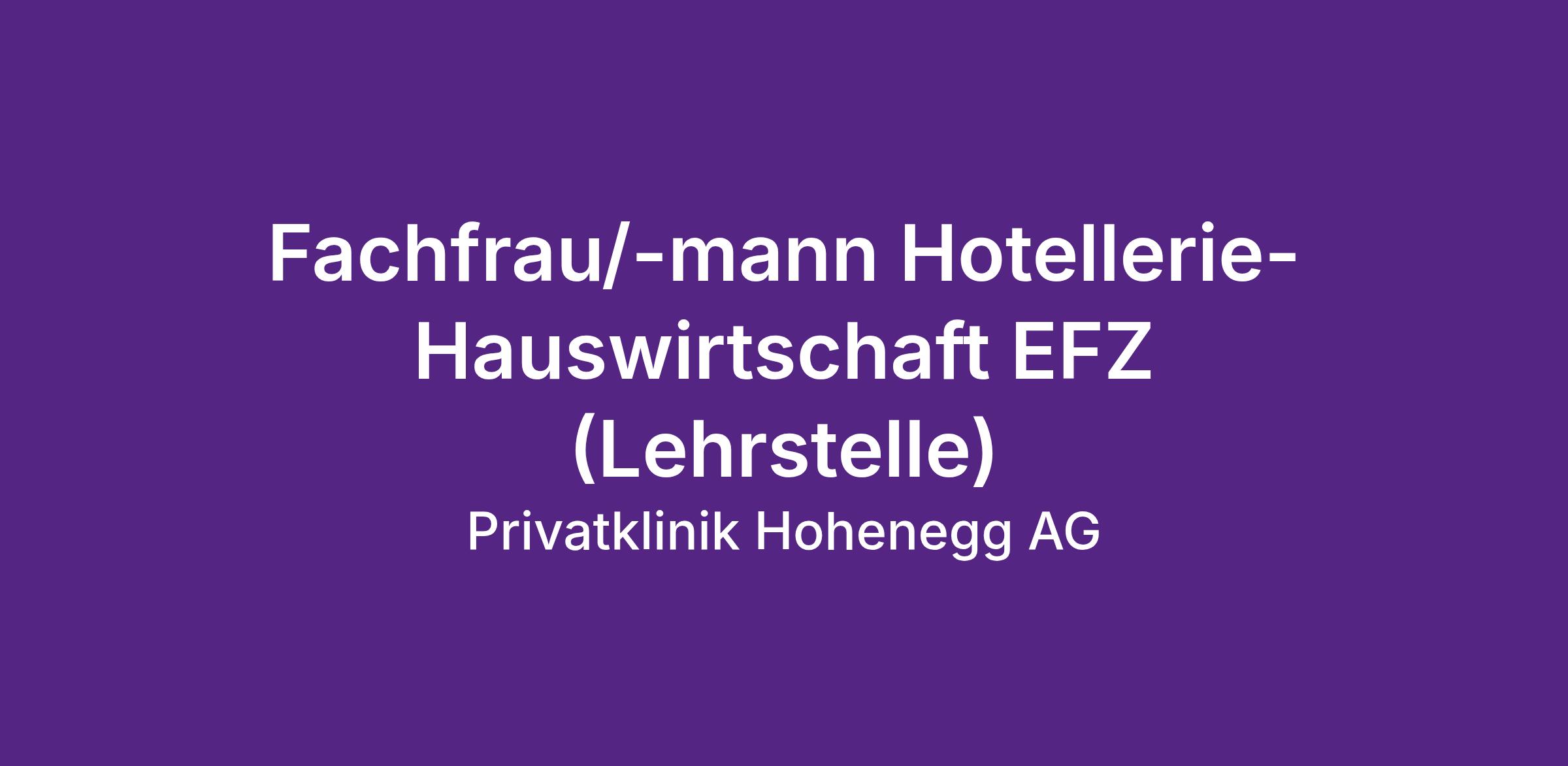Fachfrau/-mann Hotellerie-Hauswirtschaft EFZ (Lehrstelle)