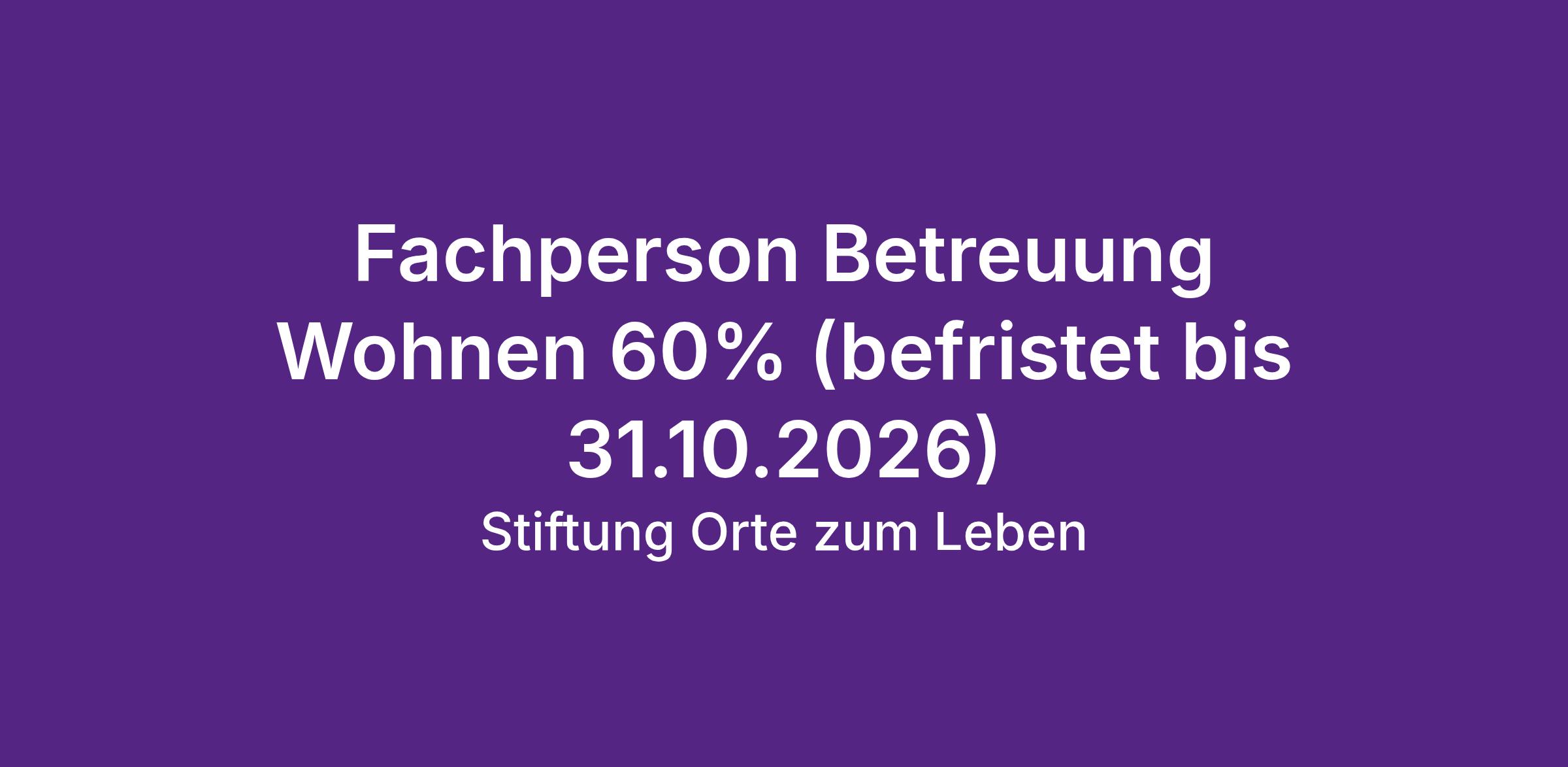 Fachperson Betreuung Wohnen 60% (befristet bis 31.10.2026)