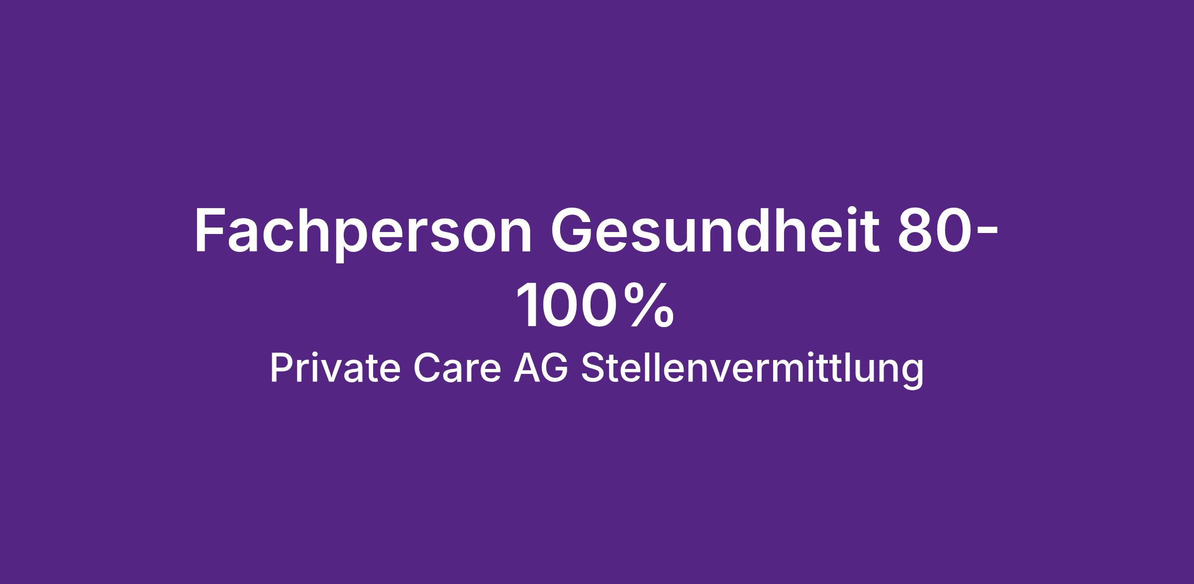 Die Private Care AG ist ein dynamisches, zukunftsorientiertes Unternehmen, welches private Pflegedienstleistungen in den Kantonen Aargau, Zürich, St. Gallen, Zug, Schwyz, Solothurn und Schaffhausen anbietet sowie spezialisierte Fachkräfte aus Pflege und Gesundheitswesen in der deutschsprachigen Schweiz vermittelt.