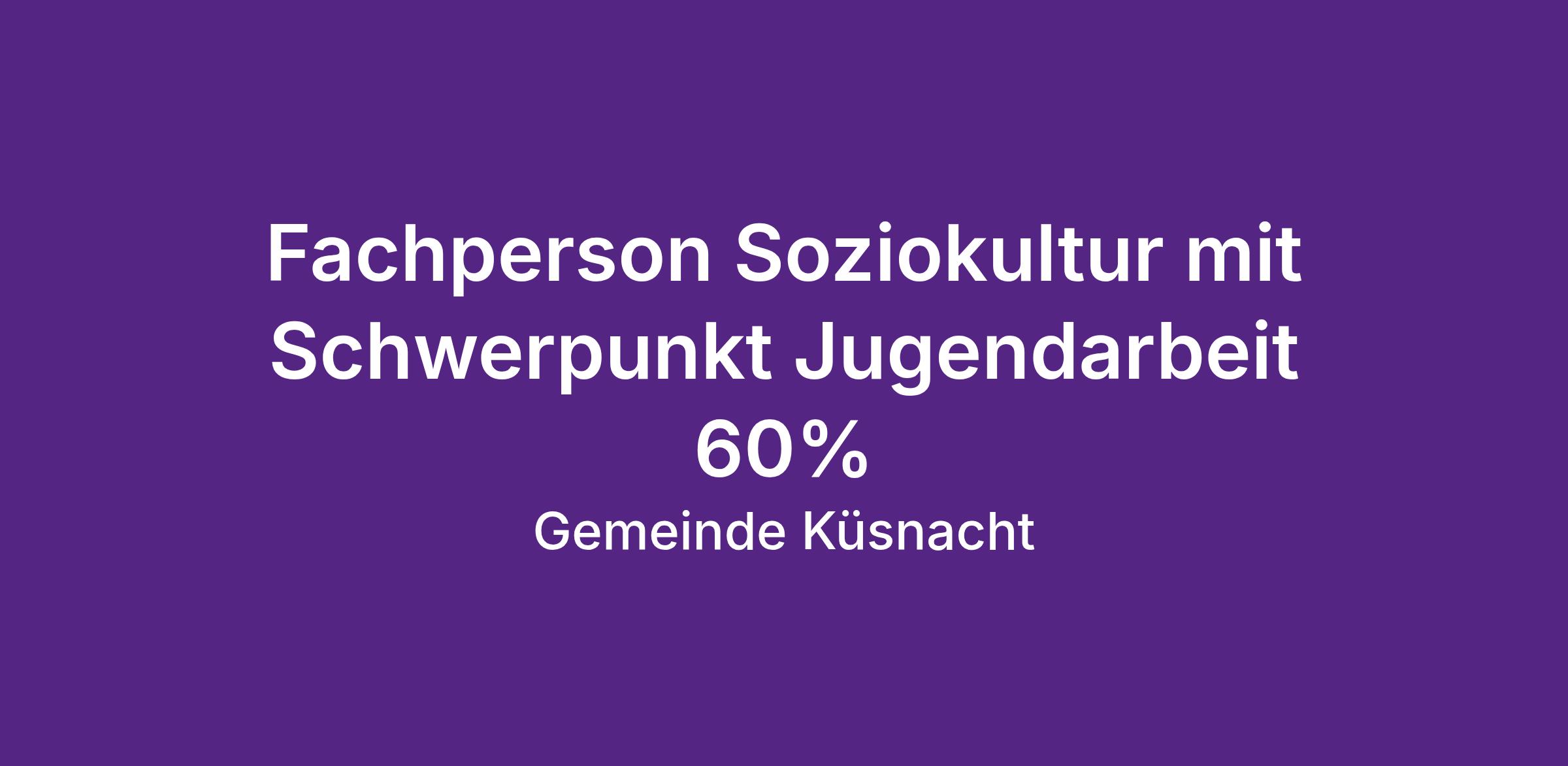 Fachperson Soziokultur mit Schwerpunkt Jugendarbeit 60%