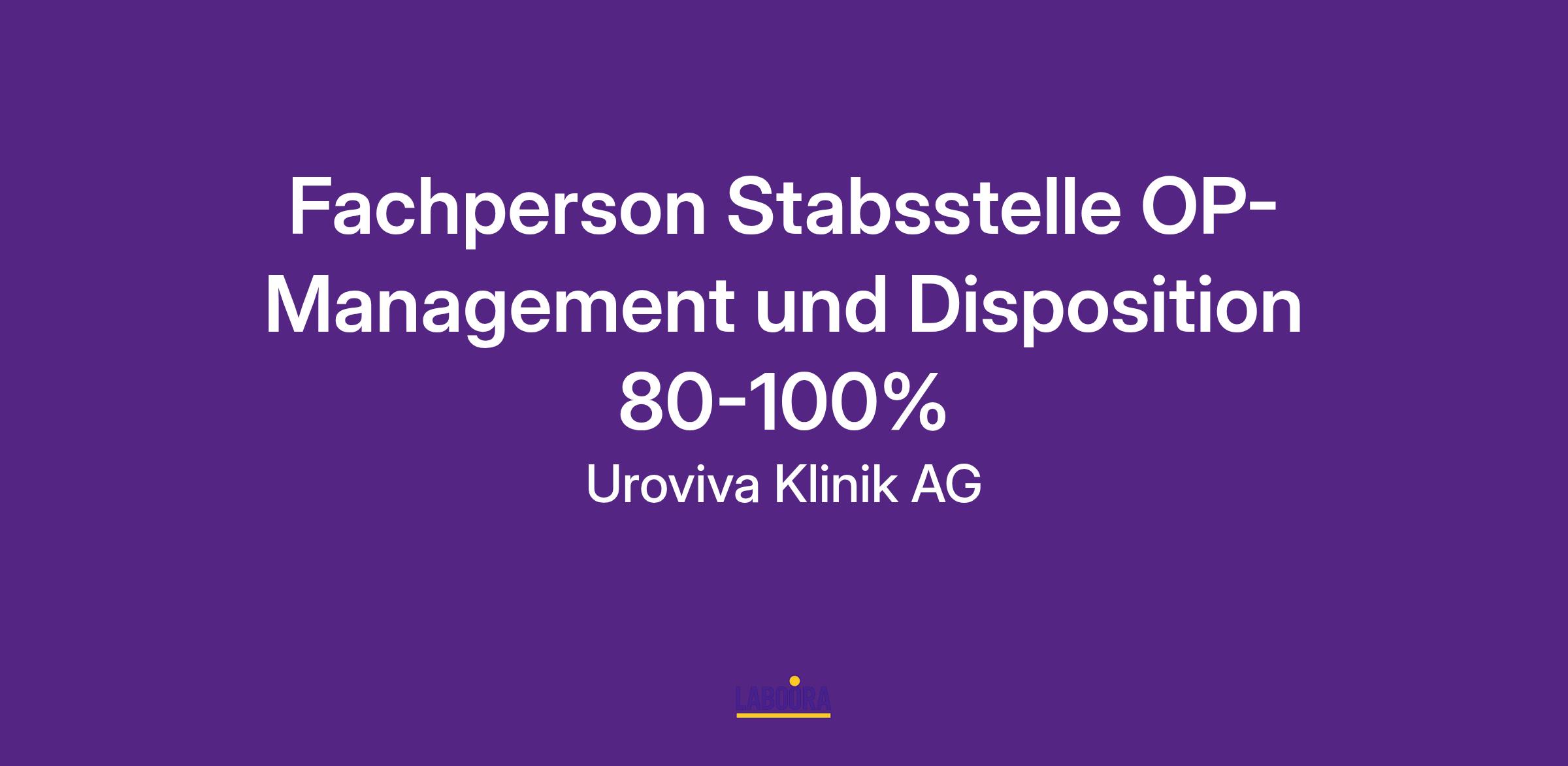 Wir suchen ab sofort oder nach Vereinbarung eine Fachperson für die Stelle(n) Disposition (OP- & Bettenplanung) oder/und OP-Management) 80 - 100%