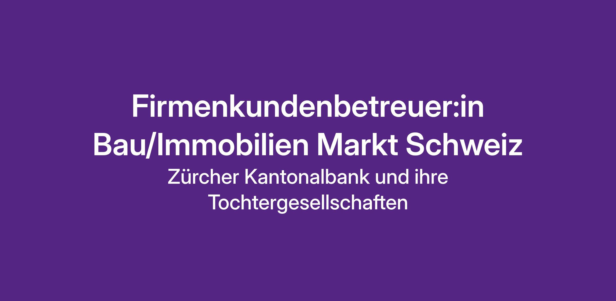 In unserem Team "Firmenkunden Markt Schweiz" verantworten wir u.a. auch das Kundensegment Bau-/Immobilien. Wir akquirieren und betreuen grössere/grosse Bau-/Immobilien Unternehmen mit Sitz ausserhalb des Wirtschaftsraums Zürich. Der primäre Fokus bezieht sich dabei auf die Deutschschweiz.