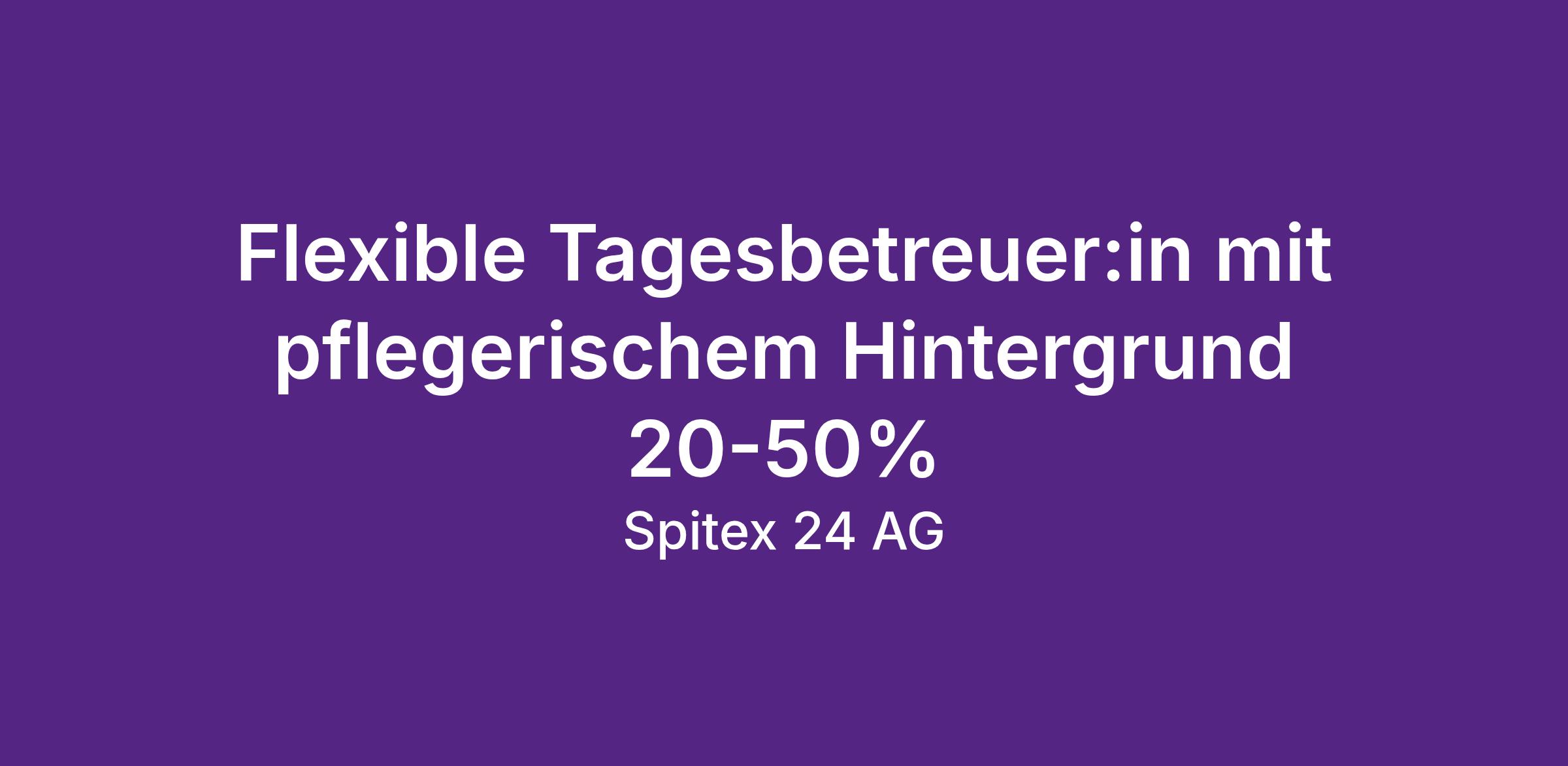 Willkommen bei der Spitex 24 AG - Wir setzen neue Massstäbe in der Gesundheitsbranche! Mit über 150 erfahrenen und sehr engagierten Mitarbeitenden gehören wir zu den führenden privaten Schweizer Pflegeanbietern. Unser Ziel ist es, Klientinnen und Klienten in der gesamten Deutschschweiz mit herausragender Betreuung zu versorgen, wobei der Mensch immer im Fokus steht. Doch unser Erfolg steht und fällt mit unserem Team. Werde Teil unseres Teams und gestalte die Zukunft der Pflege mit uns gemeinsam.