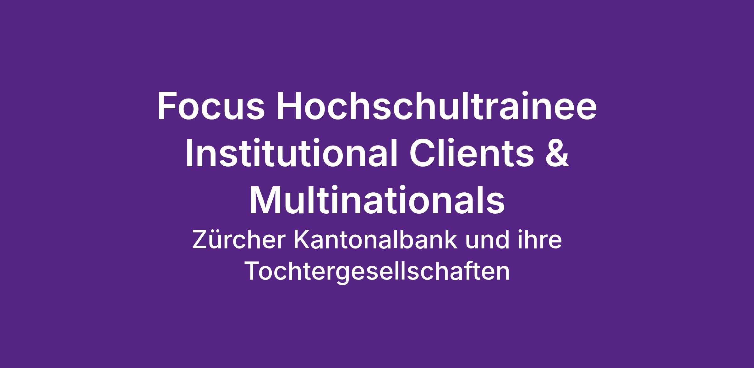 Du hast kürzlich dein Bachelor- bzw. Masterstudium abgeschlossen? Du möchtest in den Bereich Institutional Clients & Multinationals eintauchen, um deinen Rucksack mit Praxiserfahrungen zu füllen? Dann entdecke jetzt deine Chance bei einer der grössten Ausbildungsstätten des Kantons Zürich.