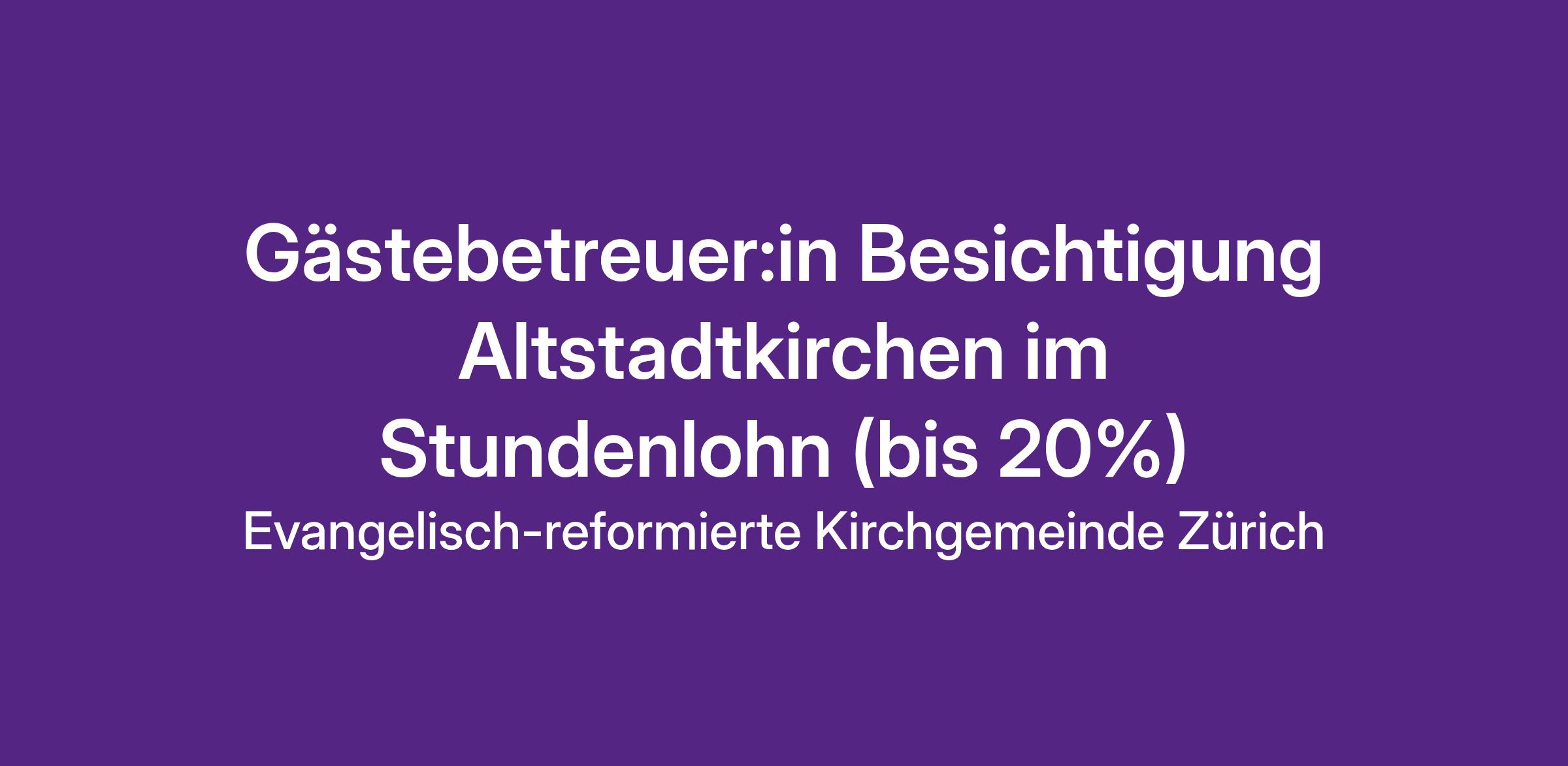 Der Kirchenkreis eins gehört zur Kirchgemeinde Zürich und umfasst die Altstadt mit den Kirchen Fraumünster, Grossmünster, St. Peter, der Wasserkirche und der Predigerkirche. Für das engagierte Team «Besichtigung» suchen wir per 1. März 2026 oder nach Vereinbarung Sie als