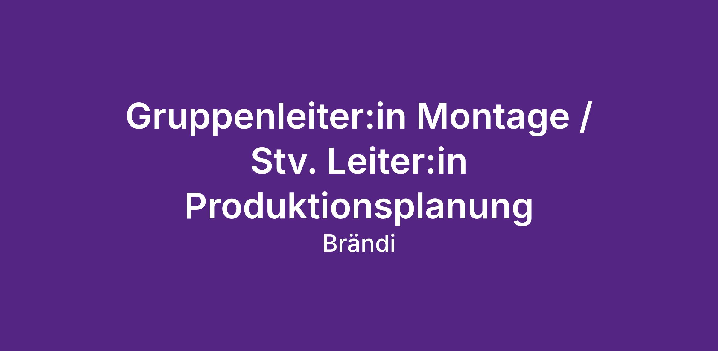 Gruppenleiter:in Montage / Stv. Leiter:in Produktionsplanung