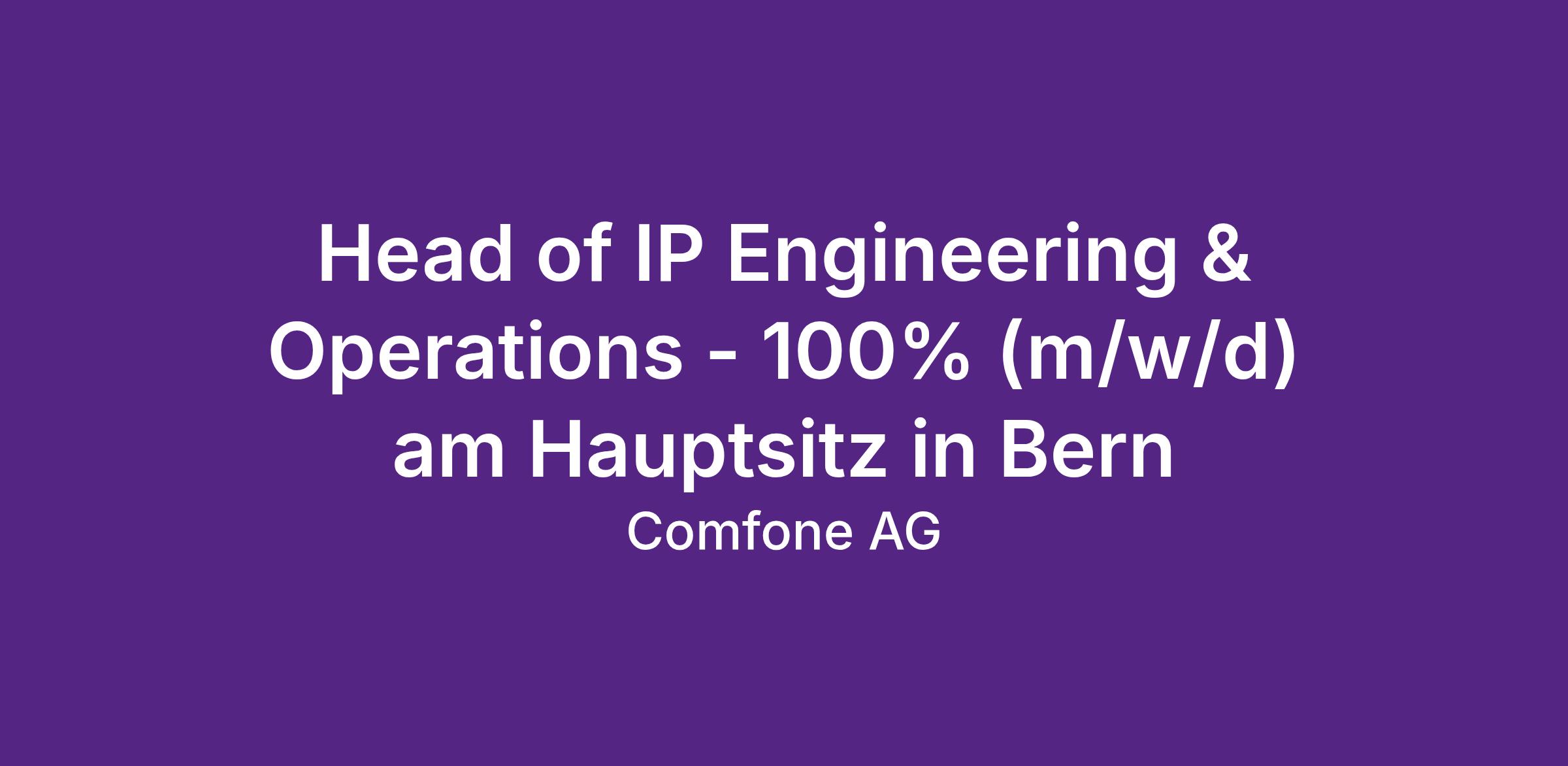 Head of IP Engineering & Operations - 100% (m/w/d) am Hauptsitz in Bern