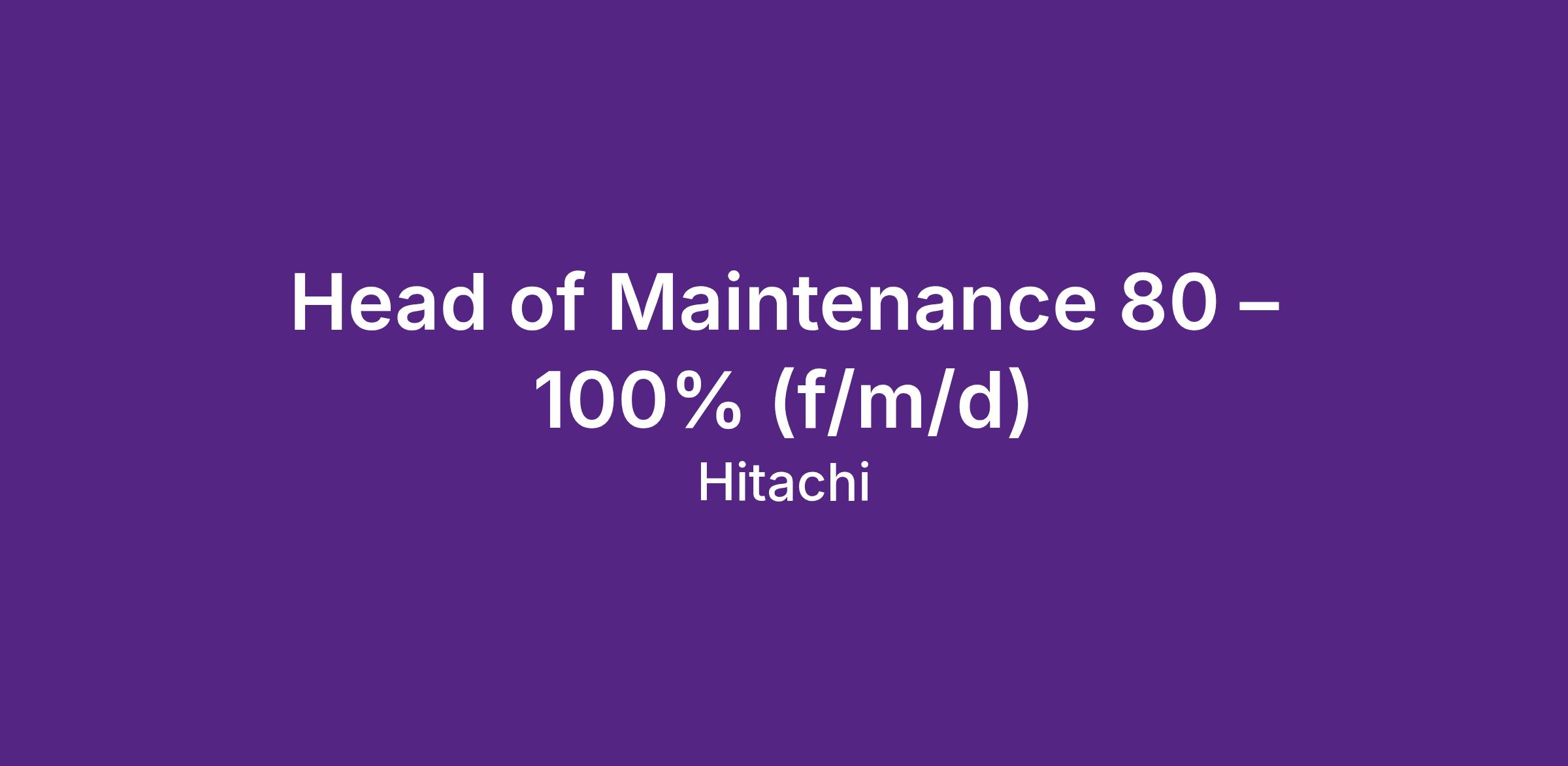 Ziel der Funktion ist die Sicherstellung einer hohen Anlagenverfügbarkeit, maximaler Sicherheit sowie einer effizienten und kostenoptimierten Instandhaltungsorganisation. Sie agieren als strategischer Partner der Geschäftsleitung und führen die Instandhaltung sowohl strategisch als auch operativ.