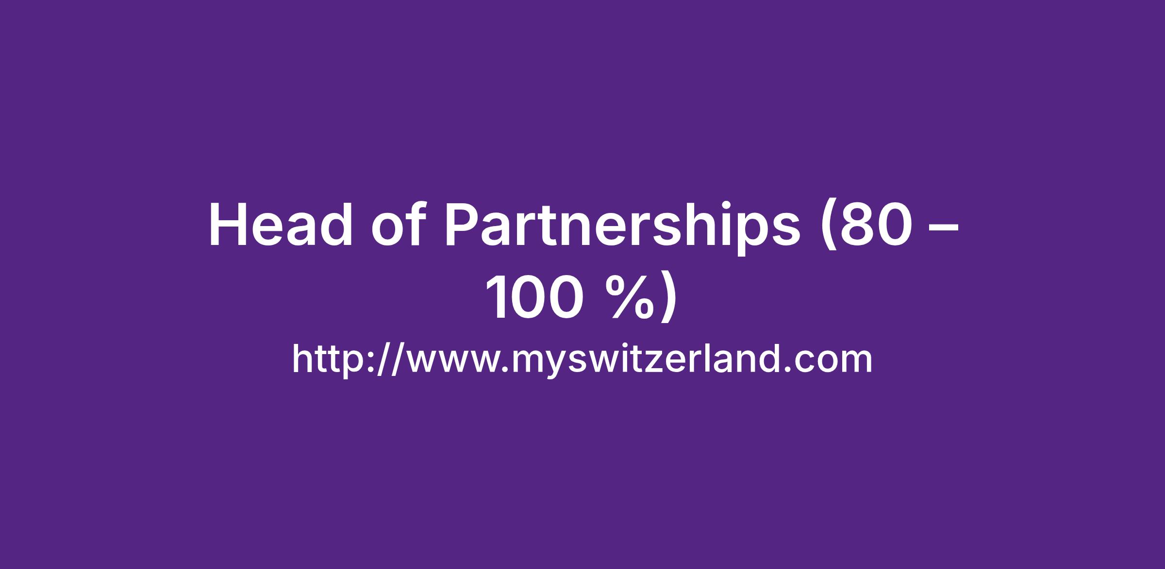 Das Team Partnerships betreut strategische Kooperationen mit führenden Schweizer Unternehmen wie SBB, SWISS, Lindt, Victorinox, Rausch und Mammut. Als Head of Partnerships übernimmst du eine Schlüsselrolle in der Weiterentwicklung unseres Partnermodells: Du schärfst unser Angebotsportfolio, positionierst Schweiz Tourismus im Sponsoring- und Kooperationsumfeld und gewinnst neue strategische Partner aus der Privatwirtschaft.