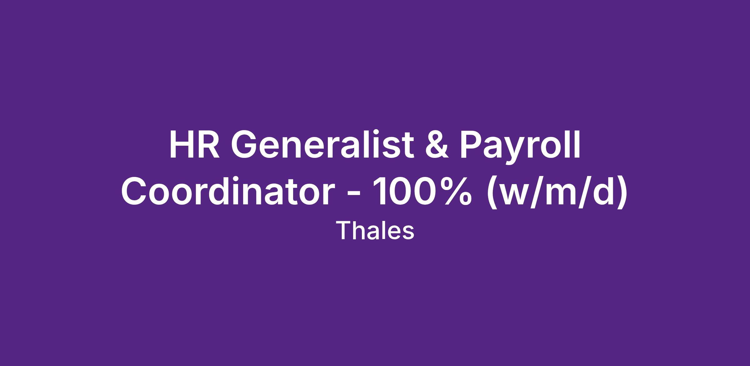 HR Generalist & Payroll Coordinator - 100% (w/m/d)