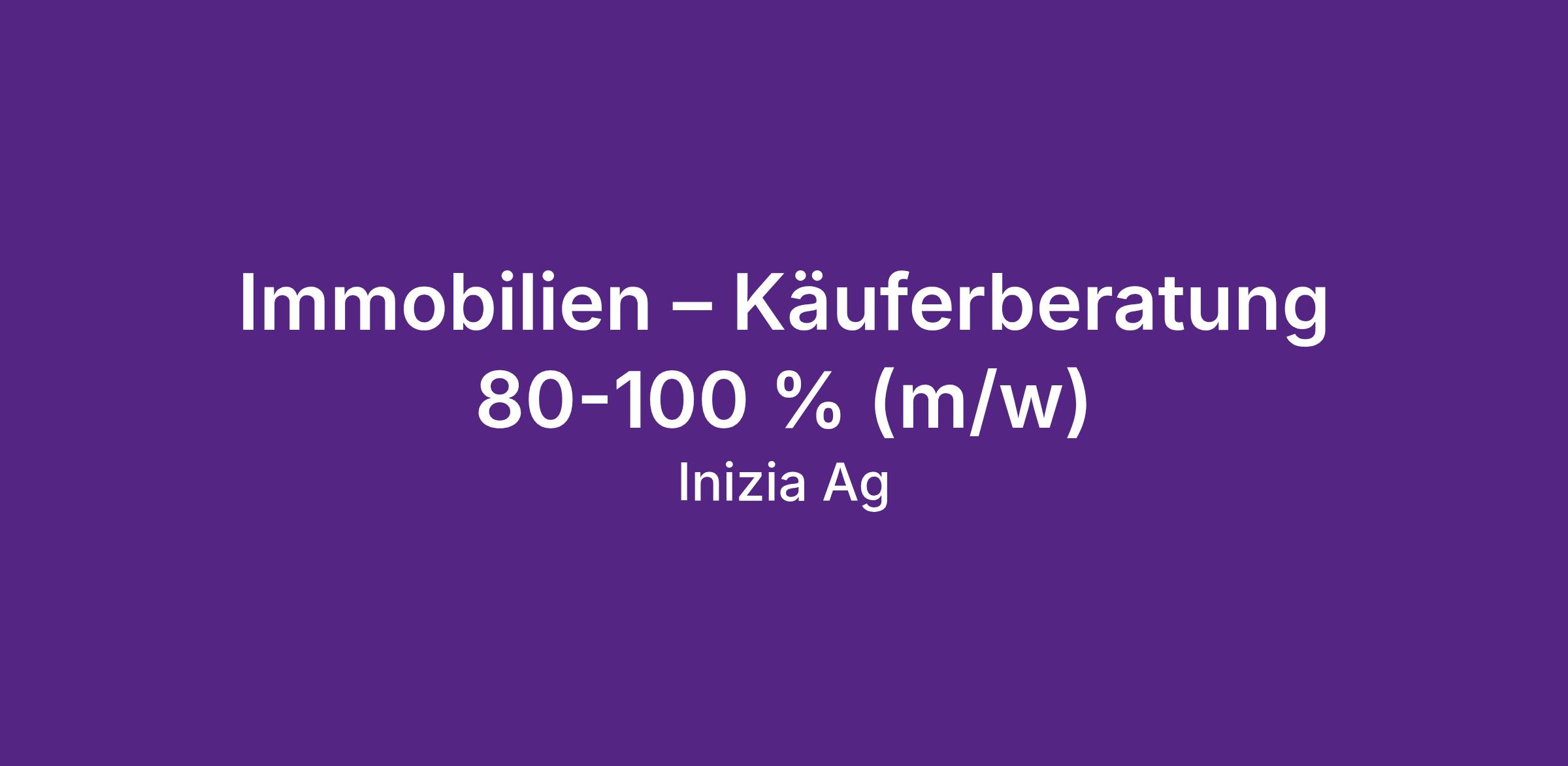 Für das Käuferberatungsteam der INIZIA Living AG in Zürich (8002) suchen wir ab sofort oder nach Vereinbarung eine verantwortungsbewusste und motivierte Persönlichkeit.