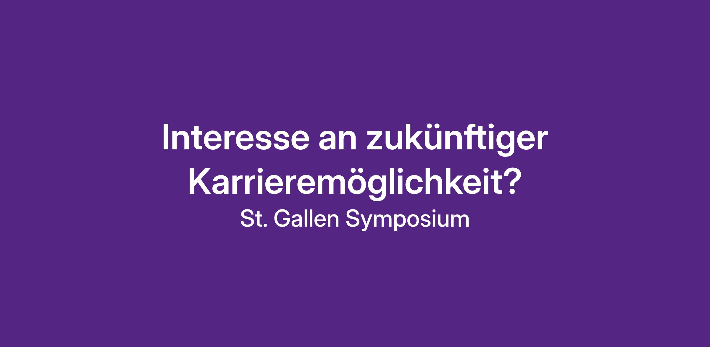 Das St. Gallen Symposium sucht motivierte und talentierte Persönlichkeiten, die Teil unseres Teams werden möchten. Als Teil der Interessensbekundung einer zukünftigen Karrieremöglichkeit geben Sie uns die Möglichkeit, Sie frühzeitig kennenzulernen und vor den Stellenausschreibungen zu prüfen, ob Sie zu uns passen. Wenn Sie neugierig auf die Arbeit in einem dynamischen, internationalen Umfeld sind und unser Team mit Ihrer Leidenschaft und Ihrem Engagement bereichern möchten, dann zögern Sie nicht, uns Ihre Bewerbungsunterlagen zu schicken. Wir freuen uns auf Ihre Initiative und sind gespannt auf Ihre Bewerbung!
