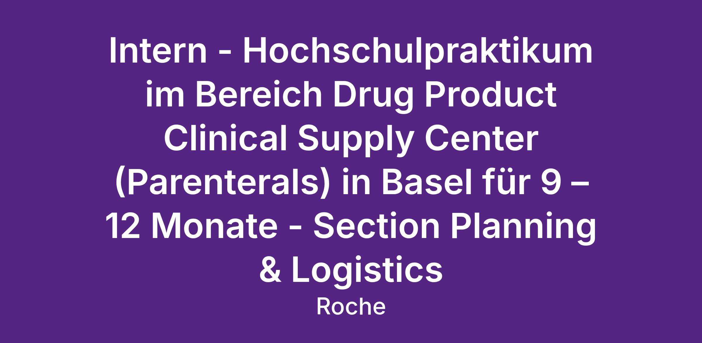 Die Section Planning & Logistics ist eine wichtige Schnittstelle zu dem aseptischen Herstellbereich und den anderen Sections innerhalb des Clinical Supply Centers. Planning & Logistics ist unter anderem für die Planung, Beschaffung und Bereitstellung der benötigten Materialien wie auch für das Bestandsmanagement für den Manufacturing Bereich zuständig. Auch sind in dieser Einheit das MES und Automation Team integriert, welche wichtige Support-Einheiten für das CSC Parenterals darstellen und einen 1st Level User-Support gewährleisten.