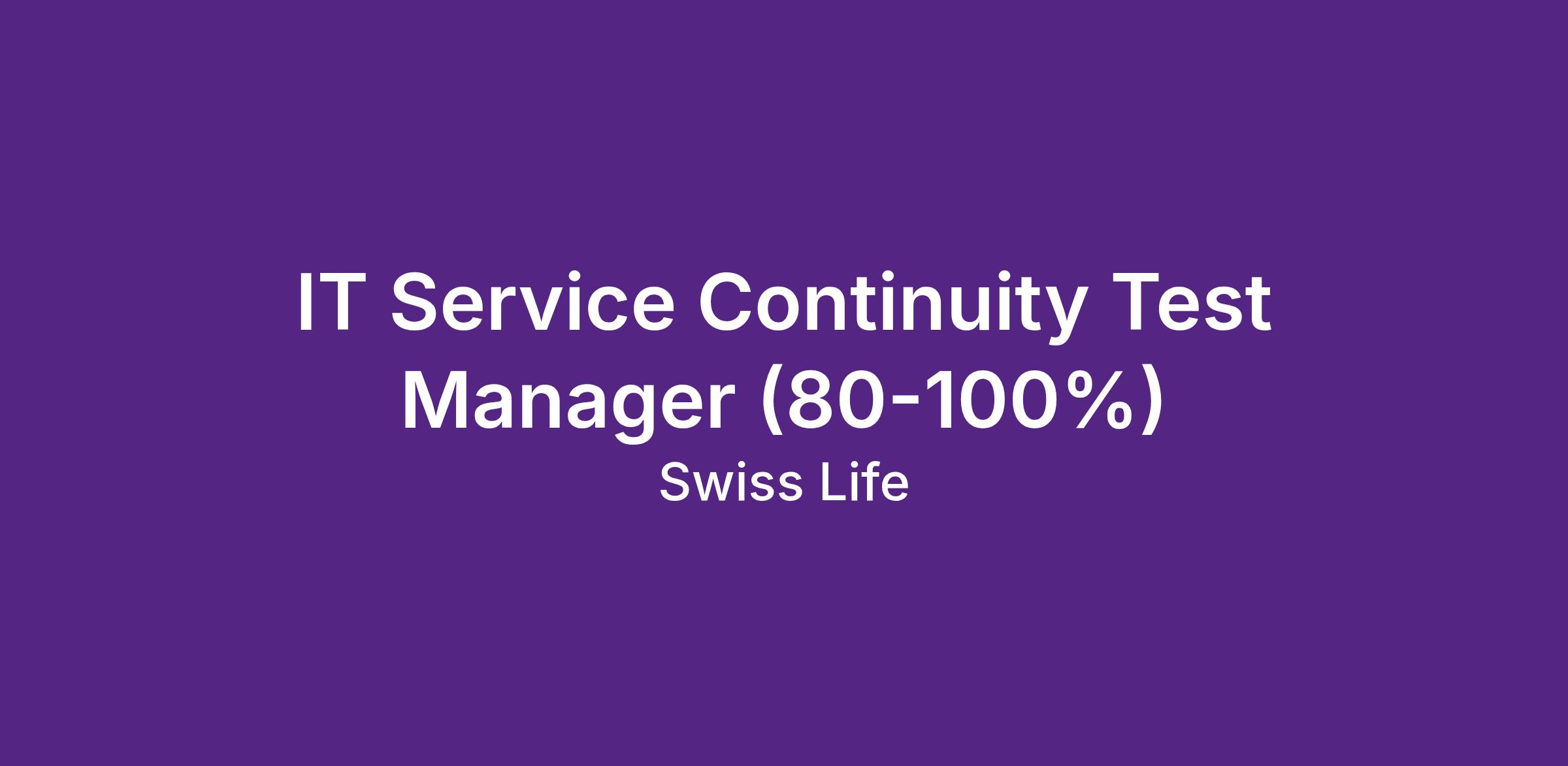 Swiss Life Asset Managers Schweiz sucht Sie als IT Service Continuity Test Manager (w/m/d) für unser Quality Assurance Team am Standort Zürich. In einem kleinen, agilen Team definieren, vereinheitlichen und unterstützen wir die Themen Change, Test und Release sowie IT Service Continuity Management mit Fokus auf die gesamte Division von Swiss Life Asset Managers.