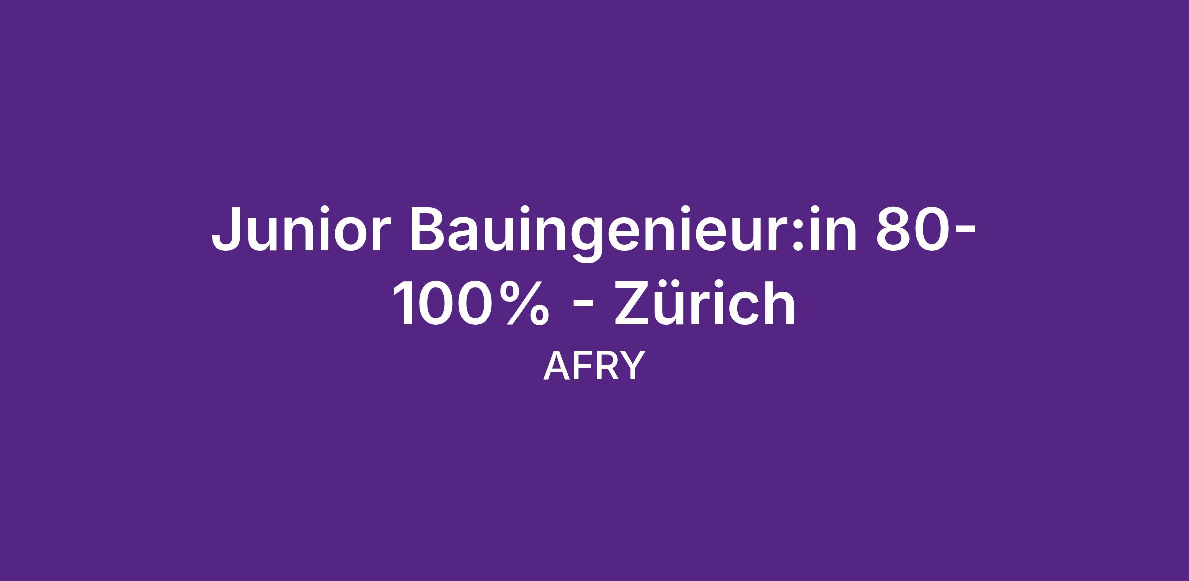 JUNIOR BAUINGENIEUR:IN 80-100% - ZÜRICH