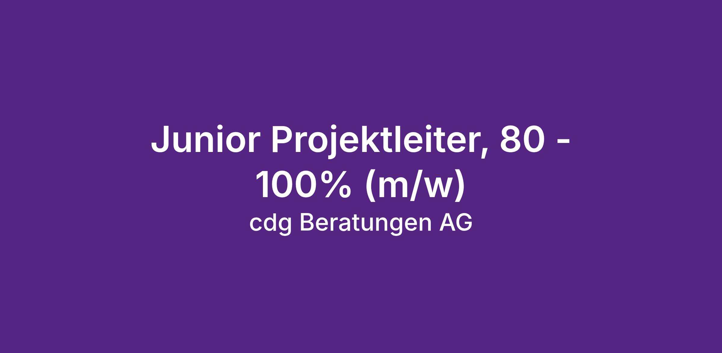 Junior Projektleiter, 80 - 100% (m/w)