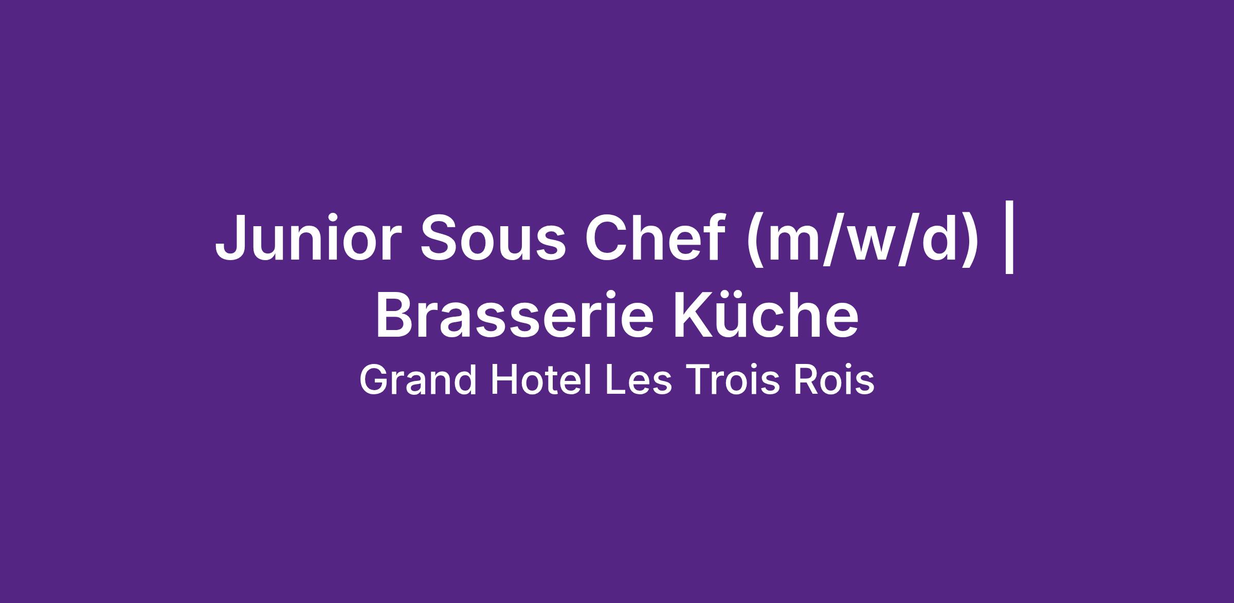 Junior Sous Chef (m/w/d) | Brasserie Küche
