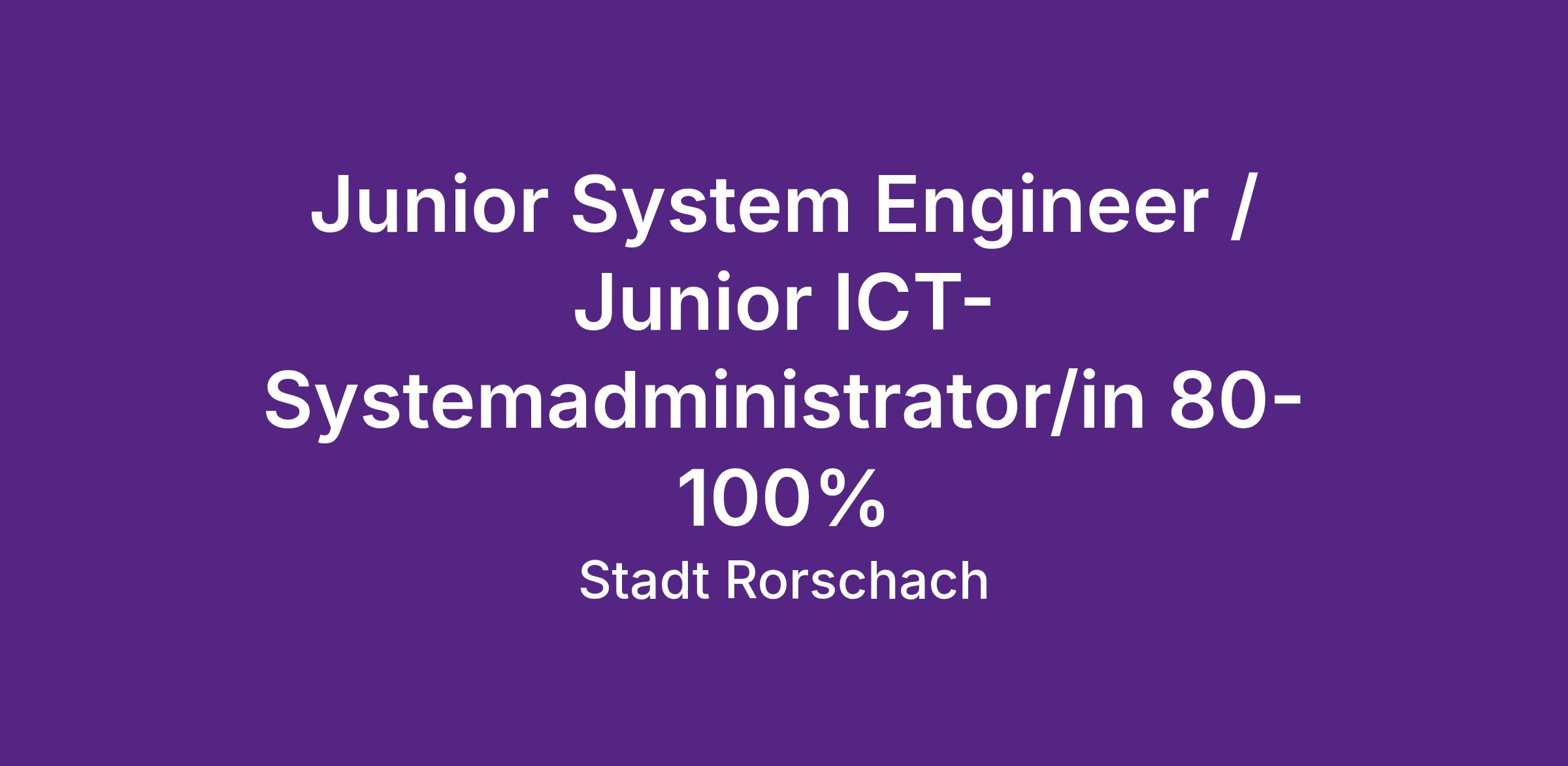 Junior System Engineer / Junior ICT-Systemadministrator/in (80–100%)