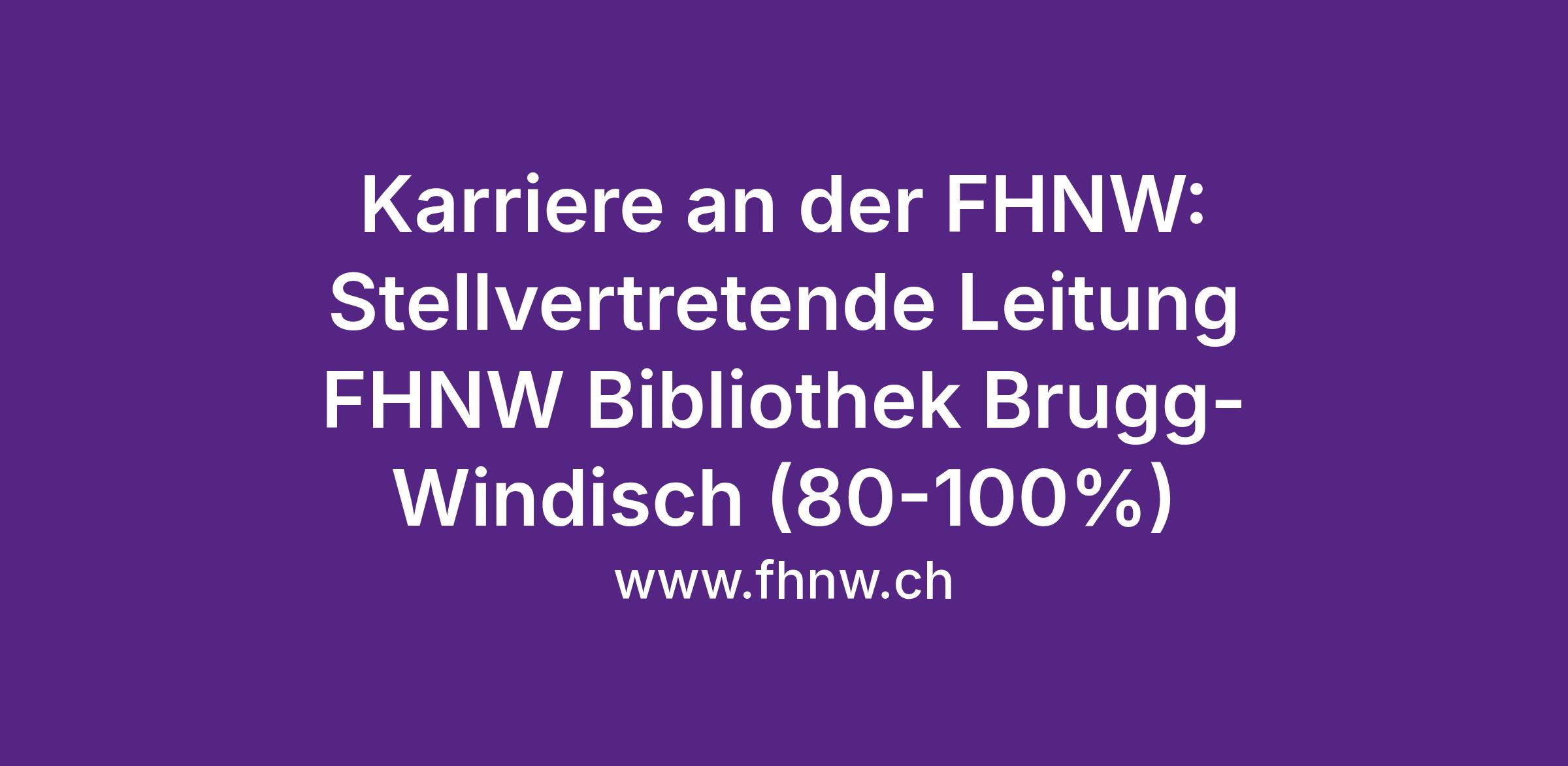 Als stellvertretende*r Leiter*in der FHNW Bibliothek Brugg-Windisch unterstützen Sie die Bibliotheksleitung in der operativen Führung sowie in der strategischen Weiterentwicklung der Bibliothek. Sie übernehmen eine zentrale Rolle in der Organisation und tragen bei Abwesenheit der Leitung die Gesamtverantwortung. Die Position bietet ein vielseitiges und gestaltbares Aufgabenfeld.
