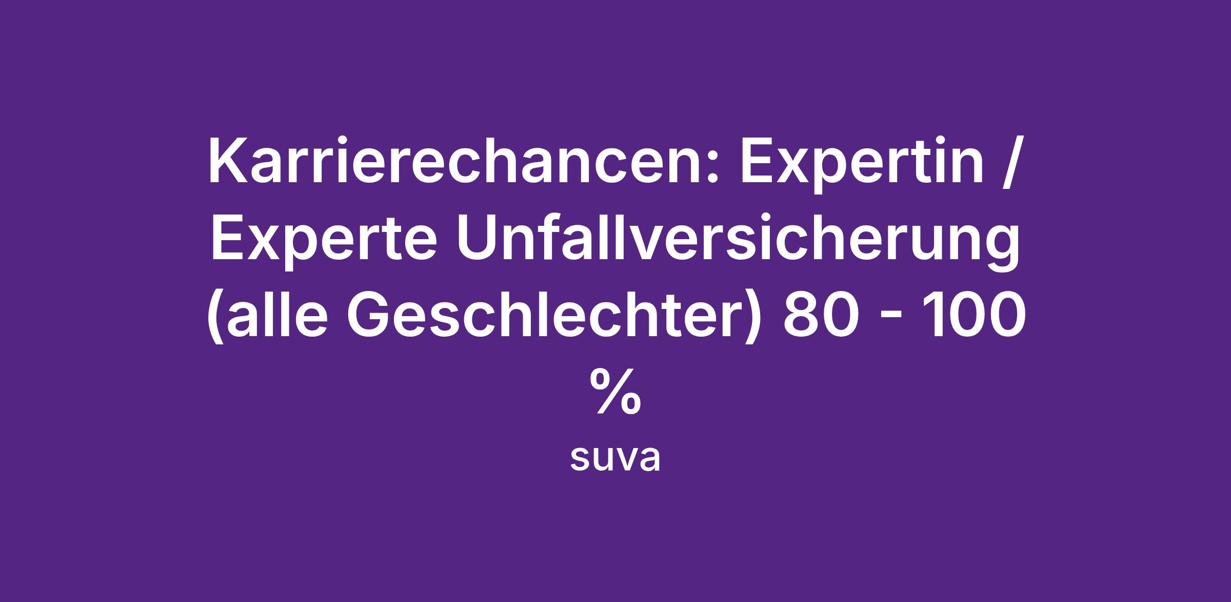 Eine Aufgabe bei der Suva ist weit mehr als einfach nur seiner Arbeit nachzugehen. Bei uns kannst du dich einbringen und Verantwortung übernehmen. Mit deinem Know-how sorgst du dafür, dass unsere Prämien und Tarife fair und risikogerecht bleiben – für unsere Kunden. Damit leistest du einen wichtigen Beitrag für einen starken und gesunden Werkplatz Schweiz. Wir bieten ein stabiles und modernes Umfeld. Lass dich überraschen und wachse mit uns.