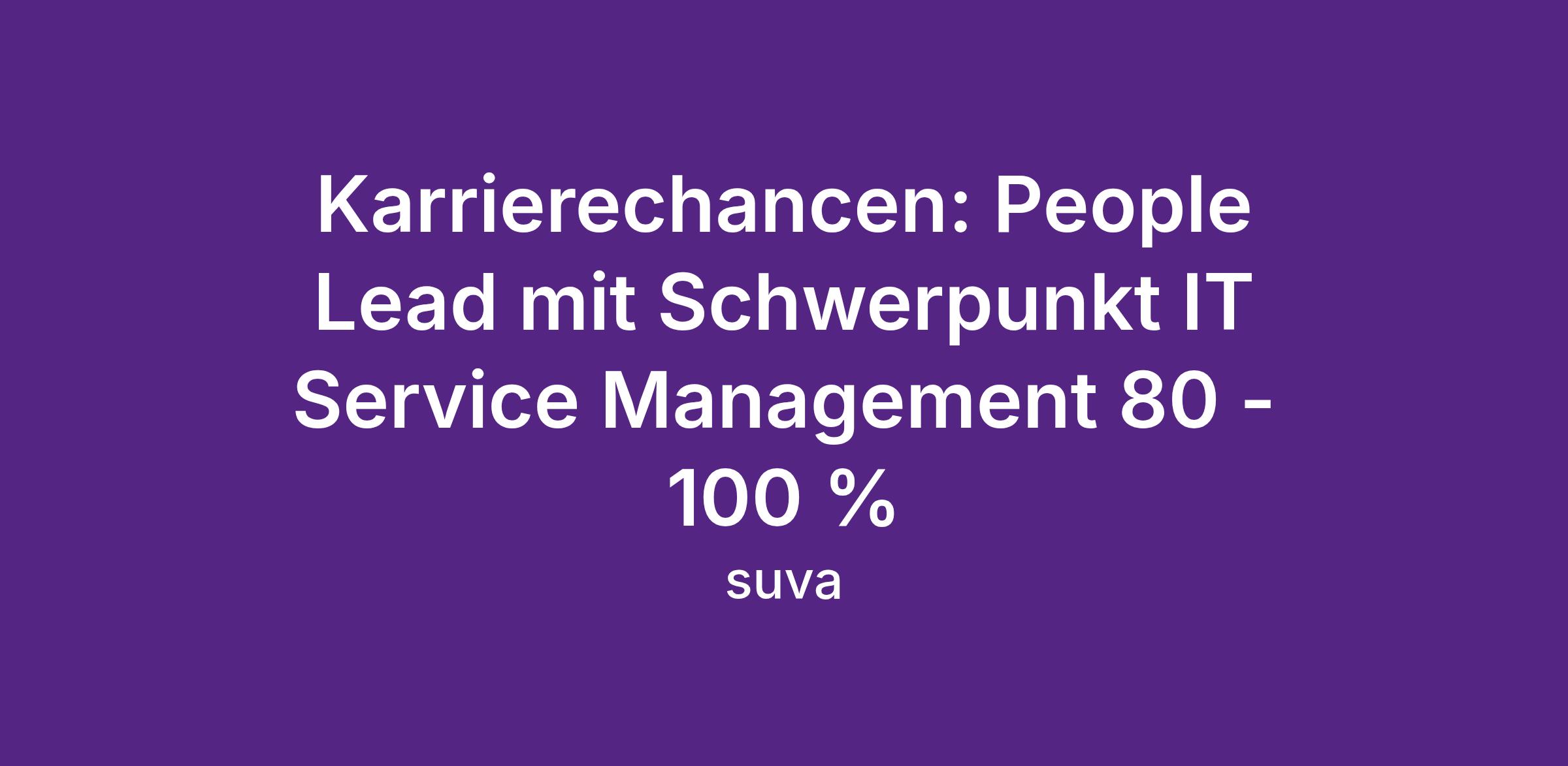 - Zudem verfügst du über praktische Erfahrung sowie weiterführende Ausbildungen in Business Analyse und Projektleitung im Umfeld von IT Service Management Prozessen und siehst darin eine ideale Ergänzung zur Personalführung.