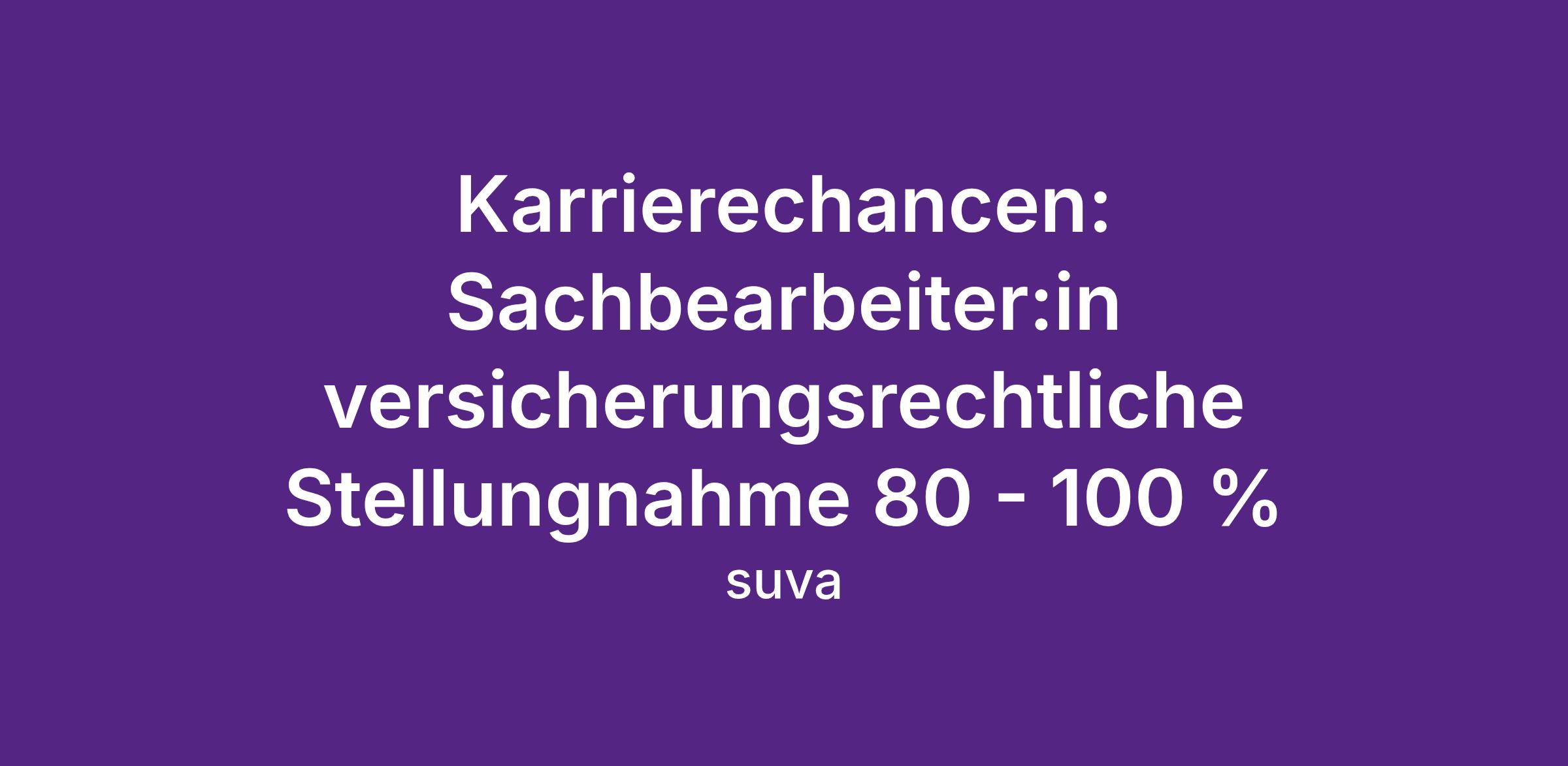 Eine Aufgabe bei der Suva ist weit mehr, als einfach nur seiner Arbeit nachzugehen. Bei uns kannst du dich einbringen und Verantwortung übernehmen. Du nimmst eine Vorbildfunktion in der Prävention von Unfällen wahr und leistest deinen persönlichen Beitrag zur Sicherheit der Bevölkerung bei Arbeit und Freizeit – genauso wie weitere rund 4500 Mitarbeitende. Wir bieten ein stabiles und modernes Umfeld. Lass dich überraschen und wachse mit uns.