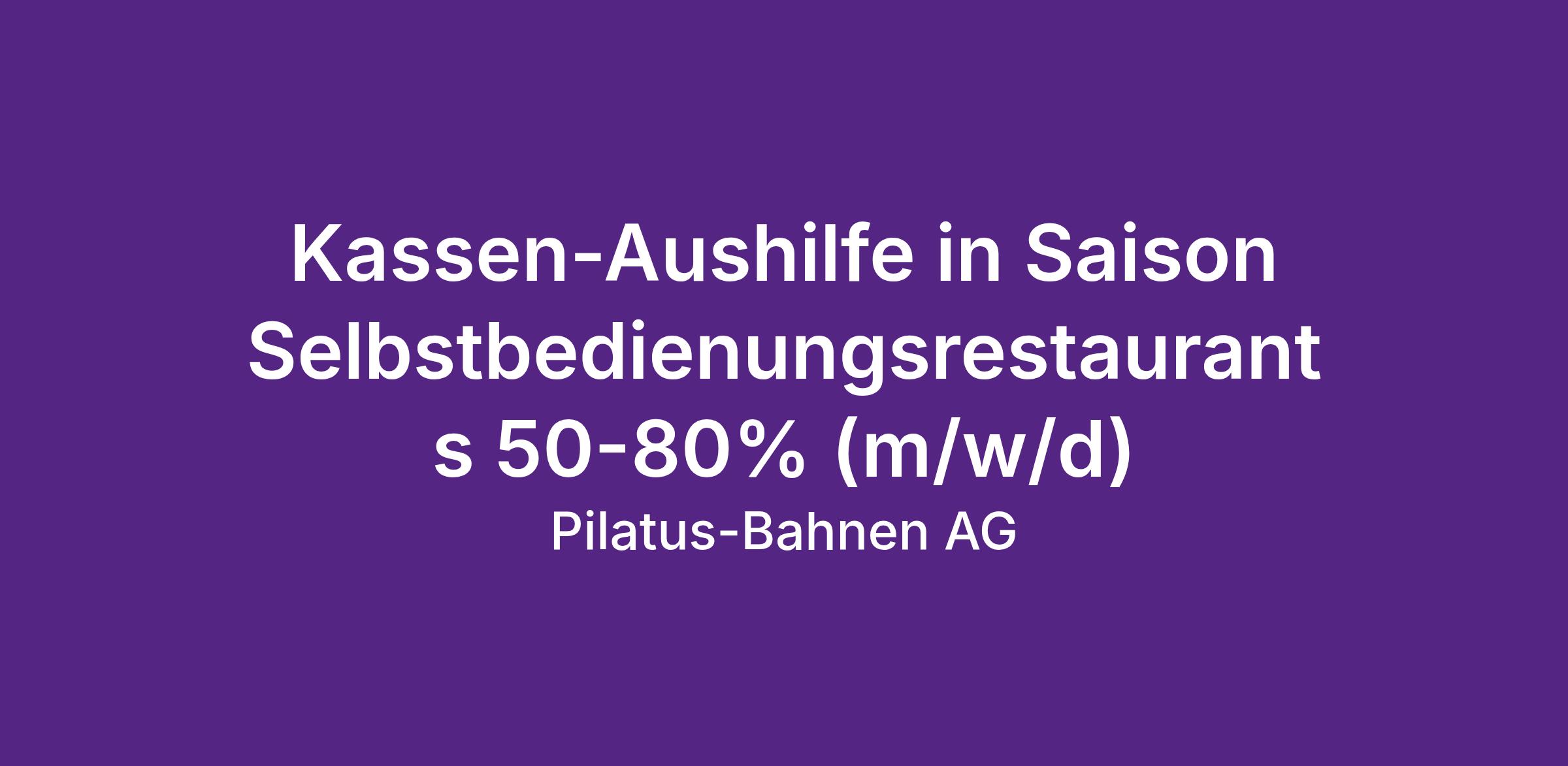 Die Pilatus-Bahnen AG sucht für die Sommersaison 2026 von April bis ca. Oktober eine dienstleistungsorientierte, herzliche und flexible Person. Je nach Bedarf kommst du abwechselnd in unseren Selbstbedienungsrestaurants Chalet (Alpnachstad), Krienseregg und Fräkmüntegg (beide oberhalb Kriens) zum Einsatz.