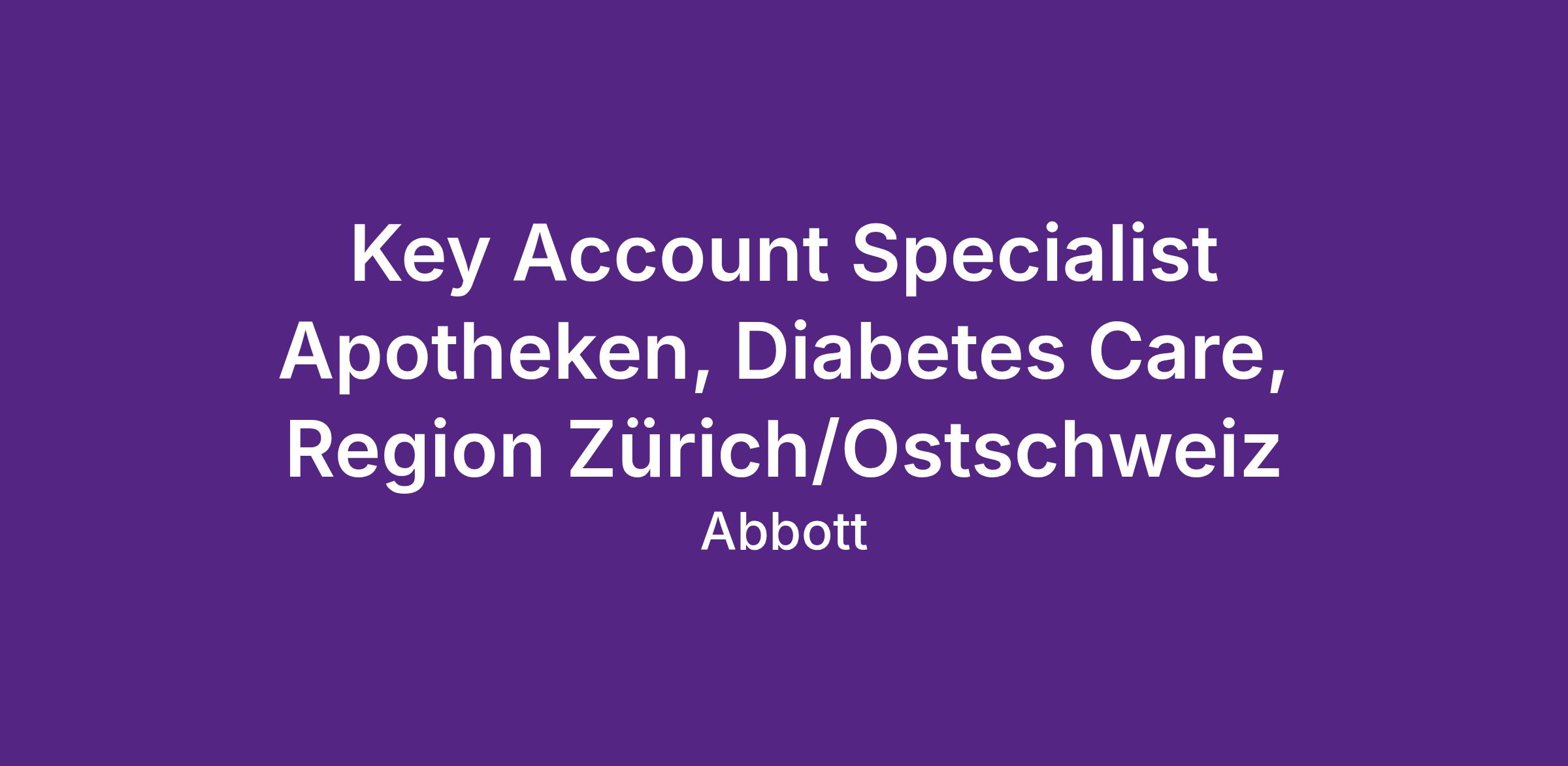 Key Account Specialist Apotheken, Diabetes Care, Region Zürich/Ostschweiz