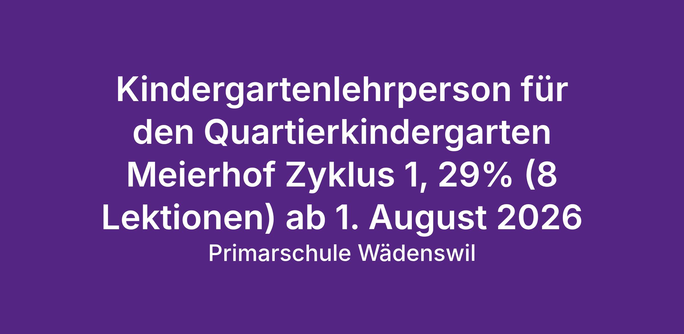 ab 1. August 2026 eine/einen Kindergartenlehrperson für den Quartierkindergarten Meierhof Zyklus 1, 29% (8 Lektionen)