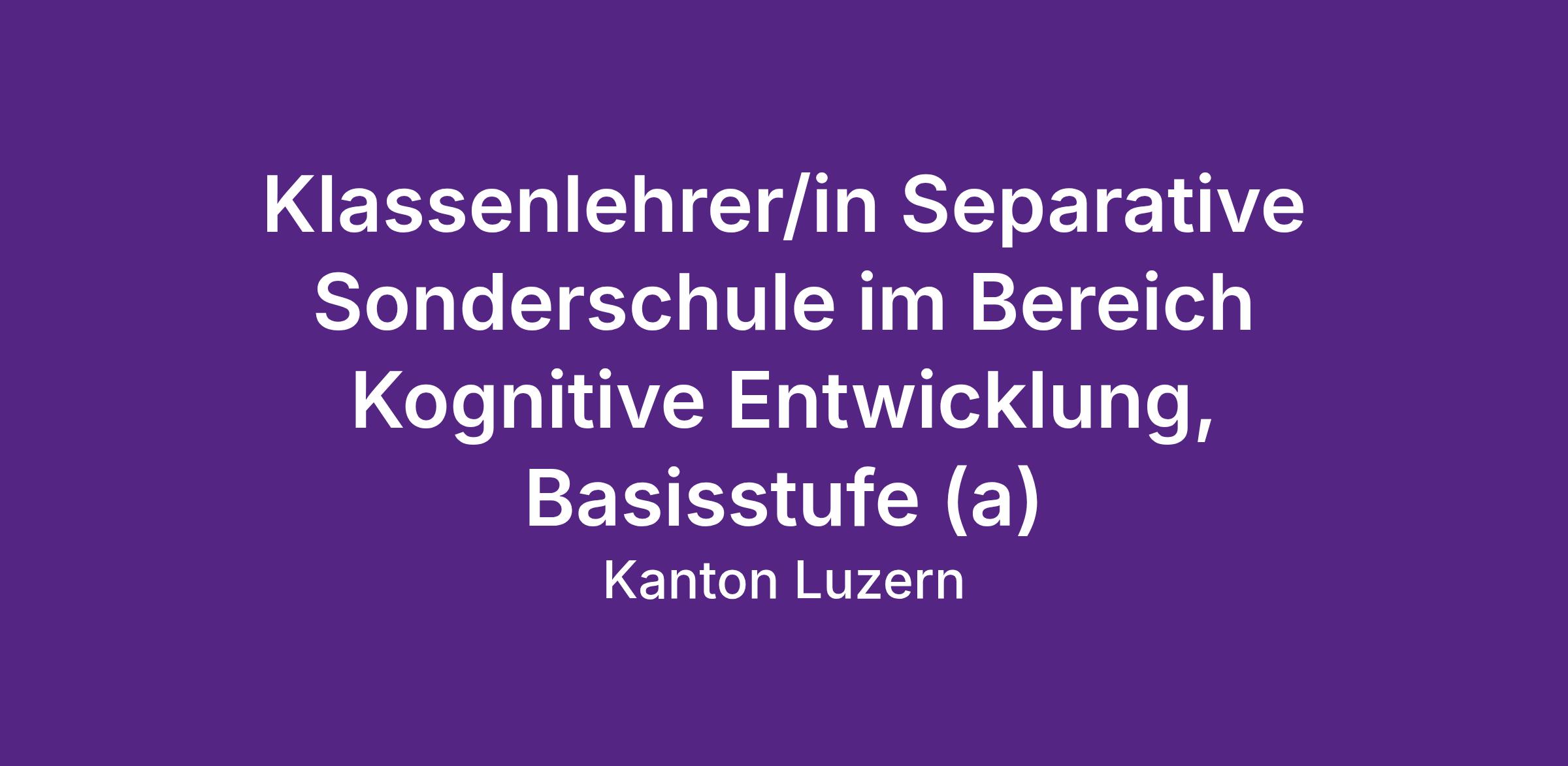 Klassenlehrer/in Separative Sonderschule im Bereich Kognitive Entwicklung, Basisstufe (a)