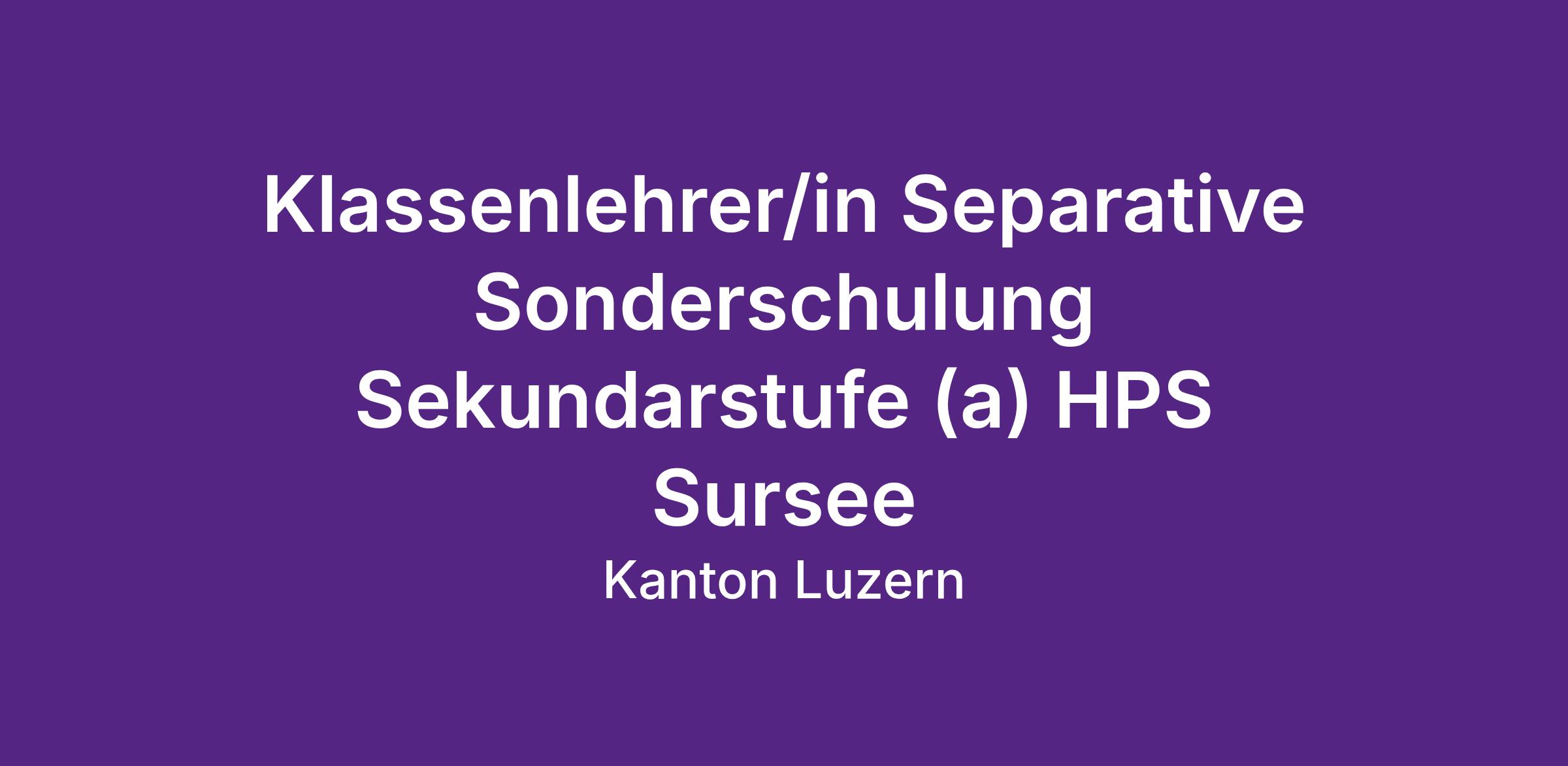 Klassenlehrer/in Separative Sonderschulung Sekundarstufe (a) HPS Sursee