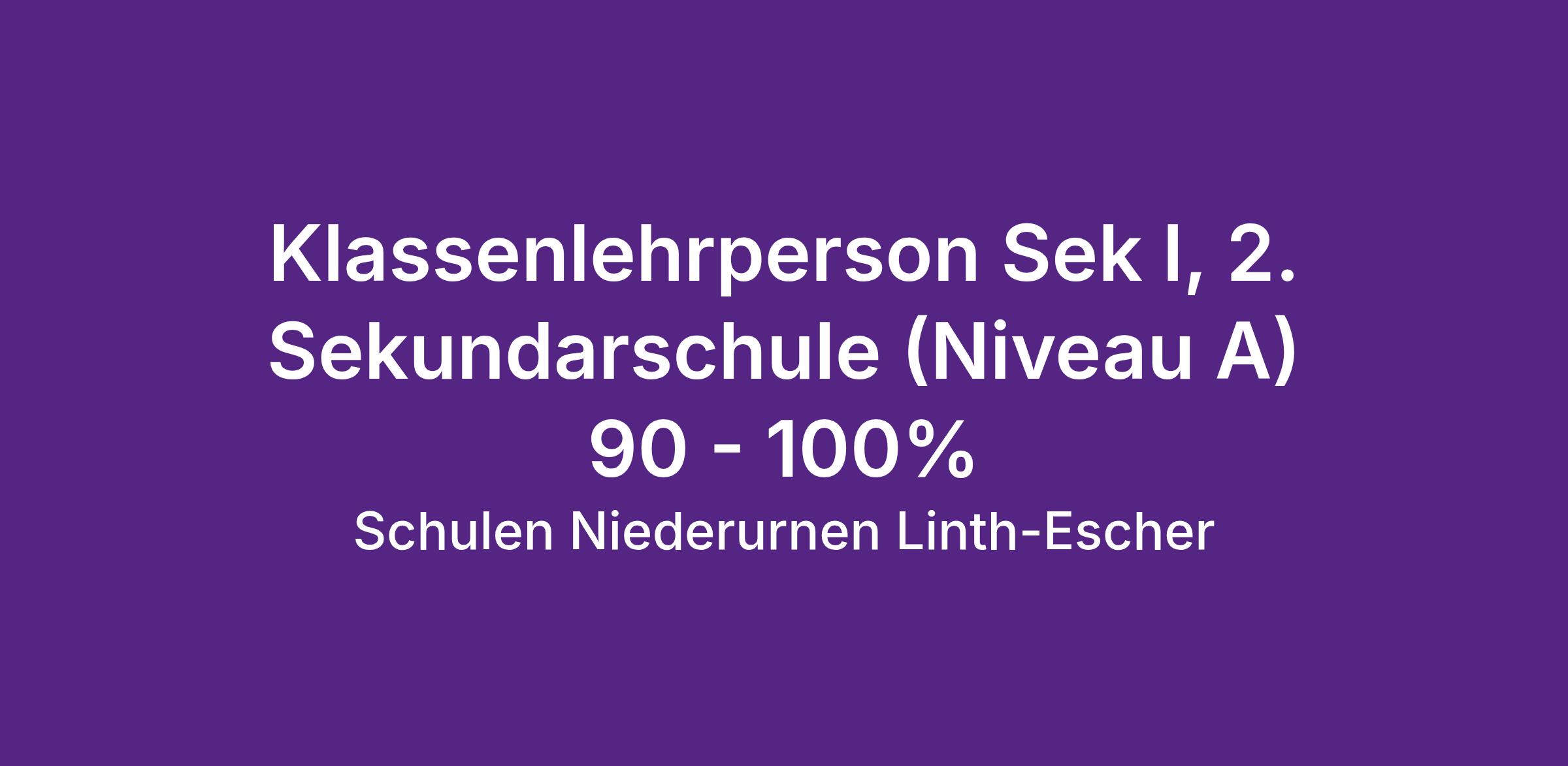 Klassenlehrperson Sek l, 2. Sekundarschule (Niveau A) 90 - 100%