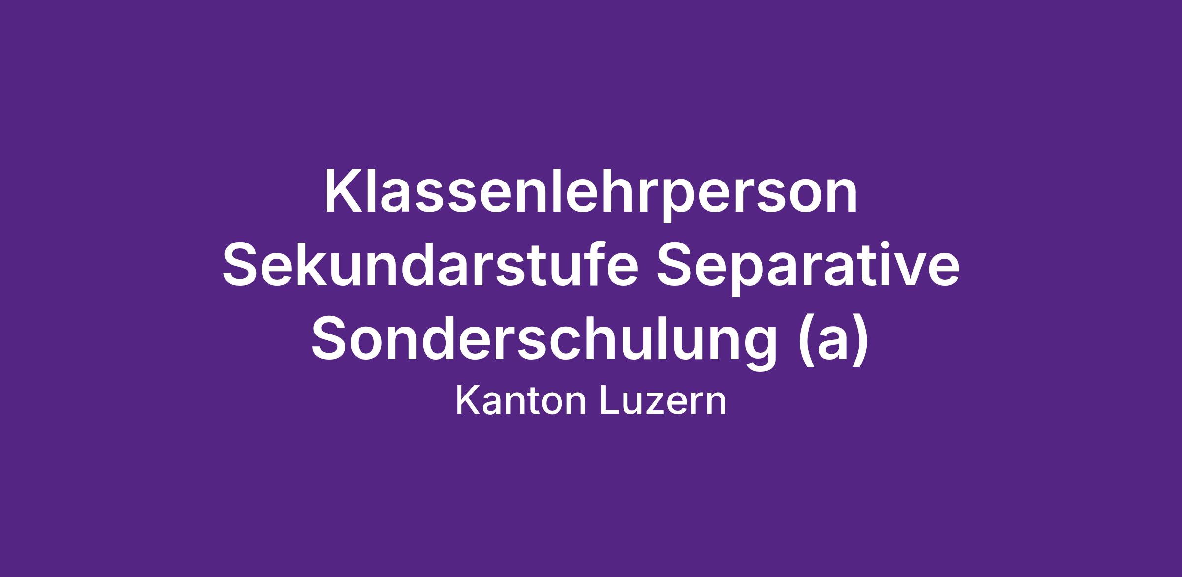 Klassenlehrperson Sekundarstufe Separative Sonderschulung (a)