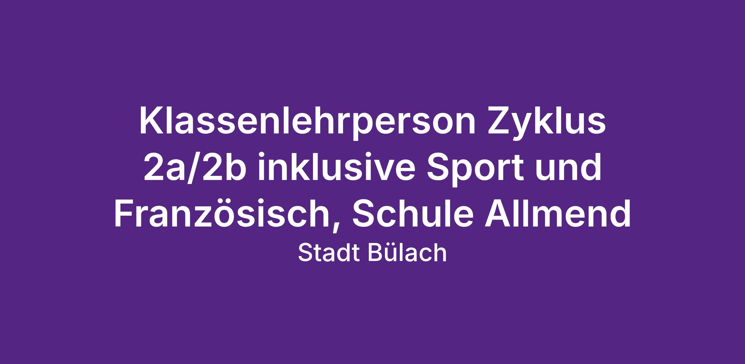 Klassenlehrperson Zyklus 2a/2b inklusive Sport und Französisch, Schule Allmend