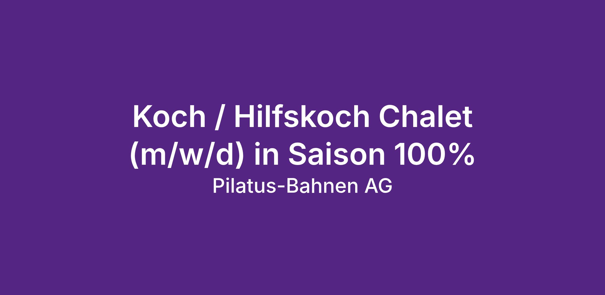 Für unser Selbstbedienungsrestaurant in Alpnachstad suchen wir für die Sommersaison 2026 von Mai bis November eine motivierte Persönlichkeit mit Freude am Kochen. Mit Engagement und Herzlichkeit sorgst du dafür, dass sich unsere Gäste im Chalet rundum wohlfühlen.