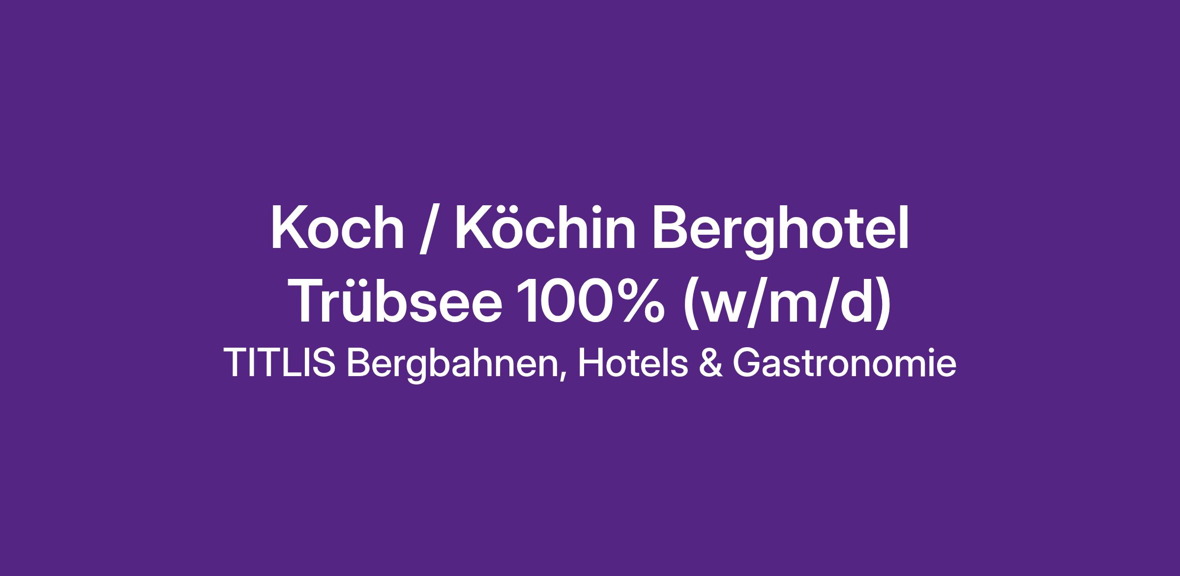Der TITLIS ist ein Ort, an dem Pioniergeist und Entschlossenheit aufeinandertreffen. Mit rund 450 Mitarbeitenden aus über 45 Nationen, die in einer Vielzahl von Berufsfeldern arbeiten, gestalten wir jeden Tag aufs Neue aufregende und bewegende Erlebnisse. Als #TheTeamToBe verkörpern wir die Leidenschaft, abseits der ausgetretenen Pfade zu gehen und die Zukunft mutig zu gestalten. Unsere Vielfalt und unser gemeinsames Streben nach Höchstleistung machen das Arbeiten bei den TITLIS Bergbahnen zu einer aussergewöhnlichen und inspirierenden Erfahrung. Zum Unternehmen gehören die Bergbahnen, zwei Hotels, das TITLIS Resort und mehrere Restaurants. Das Berghotel Trübsee umfasst 37 Zimmer mit 90 Betten, eine Selbstbedienung mit 300 Sitzplätzen, die Trübsee-Bar Lounge und das Restaurant Lago Torbido, eine grosse Sonnenterrasse für 400 Personen und einen Liegestuhl-Bereich für 30 Personen sowie Banketträumlichkeiten.