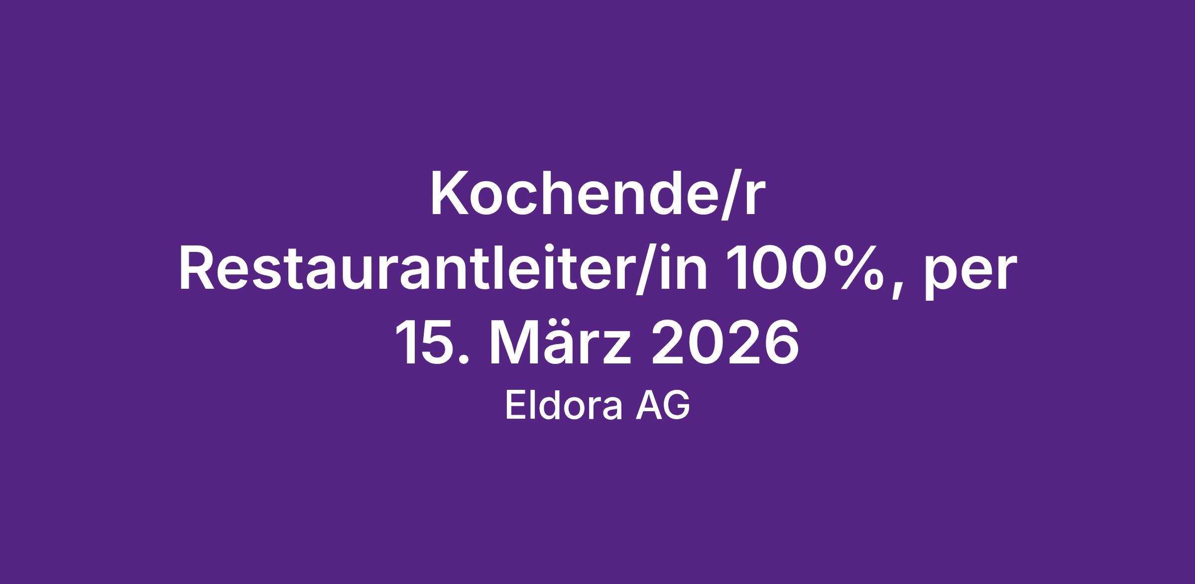 Kochende/r Restaurantleiter/in 100%, per 15. März 2026