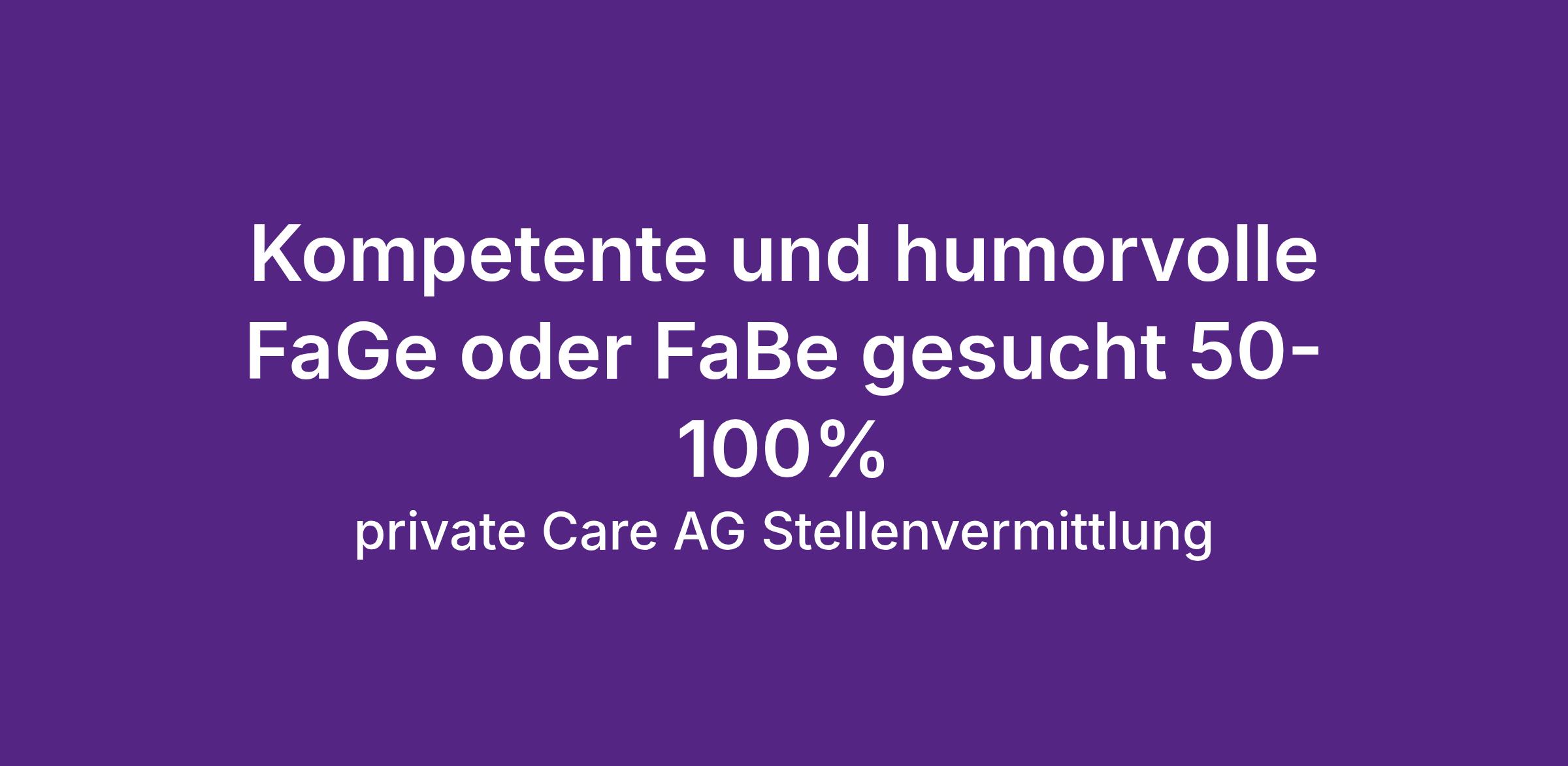 Die Private Care AG ist ein dynamisches, zukunftsorientiertes Unternehmen, welches private Pflegedienstleistungen in den Kantonen Aargau, Zürich, St. Gallen, Solothurn und Schaffhausen anbietet sowie spezialisierte Fachkräfte aus Pflege und Gesundheitswesen in der deutschsprachigen Schweiz vermittelt.