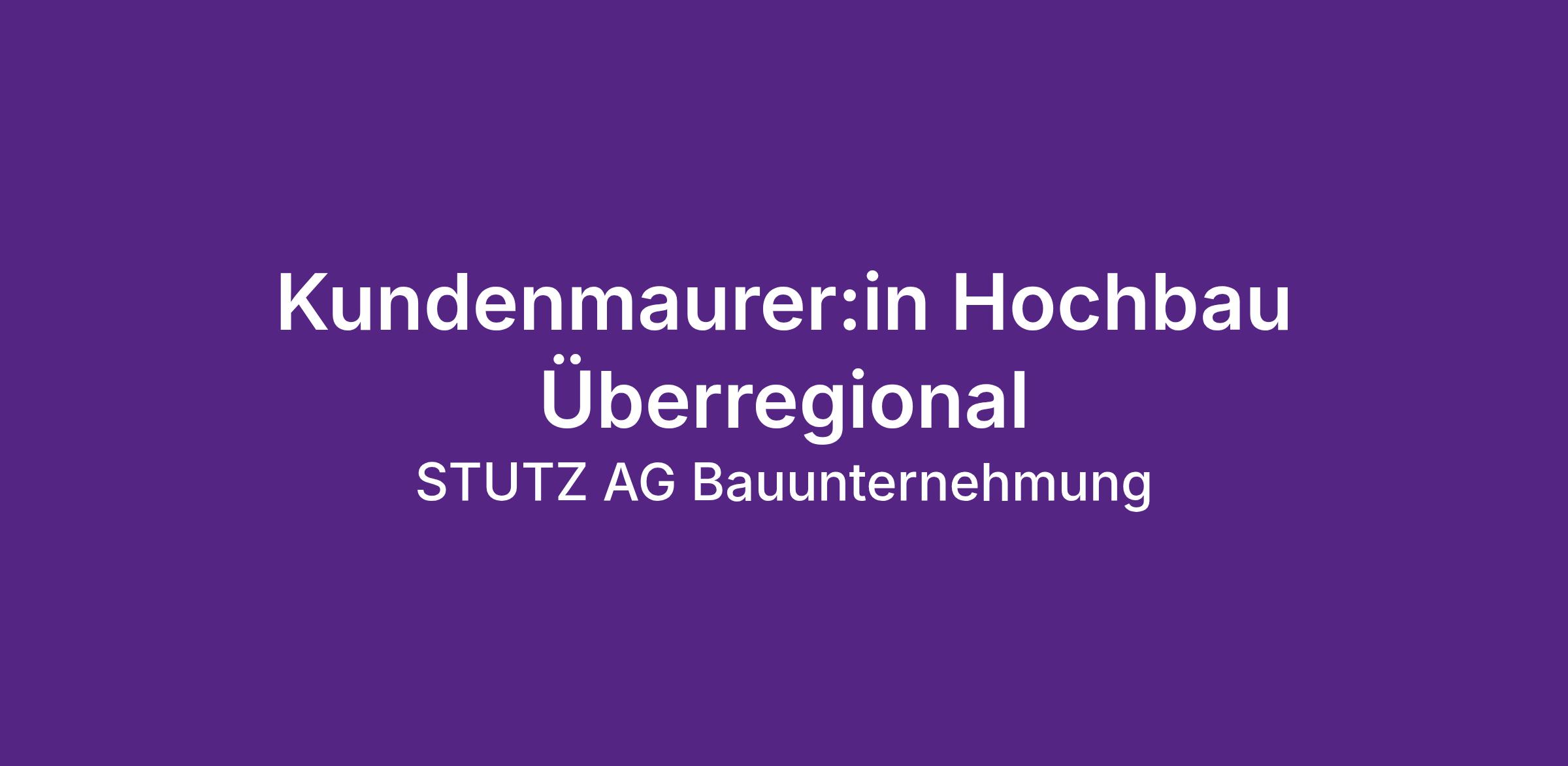 Bewerbungen ausschliesslich online unter: www.stutzag.ch/unternehmen/stellen.html