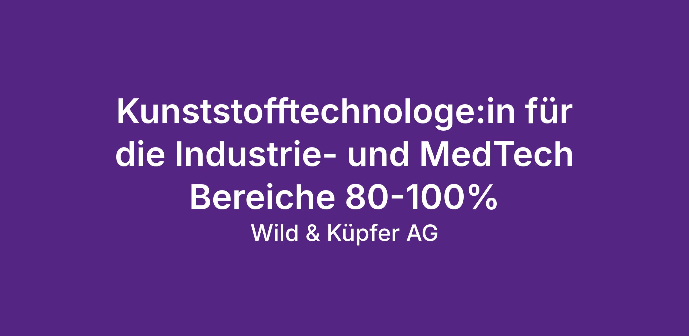 Kunststofftechnologe:in für die Industrie- und MedTech Bereiche (80% bis 100%)